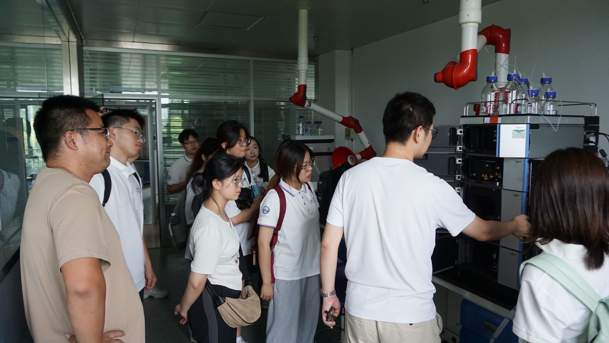 为了解全面推动长江经济带发展的落实情况,实践队于7月28日上午来到长江下游水文水资源勘测局进行参观和交流学习。在下游局副局长何良的带领下,实践队队员们了解了水位站水文勘测工作原理和基础仪器设备以及水质自动监测站的工作情况。为了解下游局对水质、水生态等指标的测定过程,实践队员们还走进实验室,与一线工作人员进行深入交流。