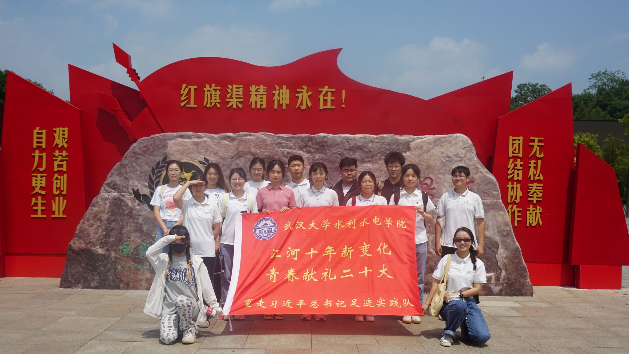 2022年10月28日,习近平总书记在安阳林州市实地察看红旗渠分水闸运行情况,指出“红旗渠就是纪念碑,记载了林县人不认命、不服输、敢于战天斗地的英雄气概。”渠水长流,精神永存。为了身临其境地感悟林县人民为改变缺水旧面貌而发扬的“自力更生、艰苦创业、团结协作、无私奉献”的精神丰碑,2023年8月3日,实践队前往河南省安阳市红旗渠进行参观学习。队员们首先来到青年洞。参与凿洞的突击队是当时从全县民工中抽调出来的300位优秀青年,这就是“青年洞”名字的由来。没有人永远年轻,但总有年轻人在关键时刻挺身而出,肩负起历史的重任。实践队队员站在青年洞下,注视着江泽民同志的题词,感知六十多年前的青年们挥汗如雨,艰苦奋斗的历史。在青年洞的党旗下,队伍中的党员同志们在领誓人慈晓虎同志的带领下重温了入党誓词,每个成员都把这段红色记忆深深刻在了心中。