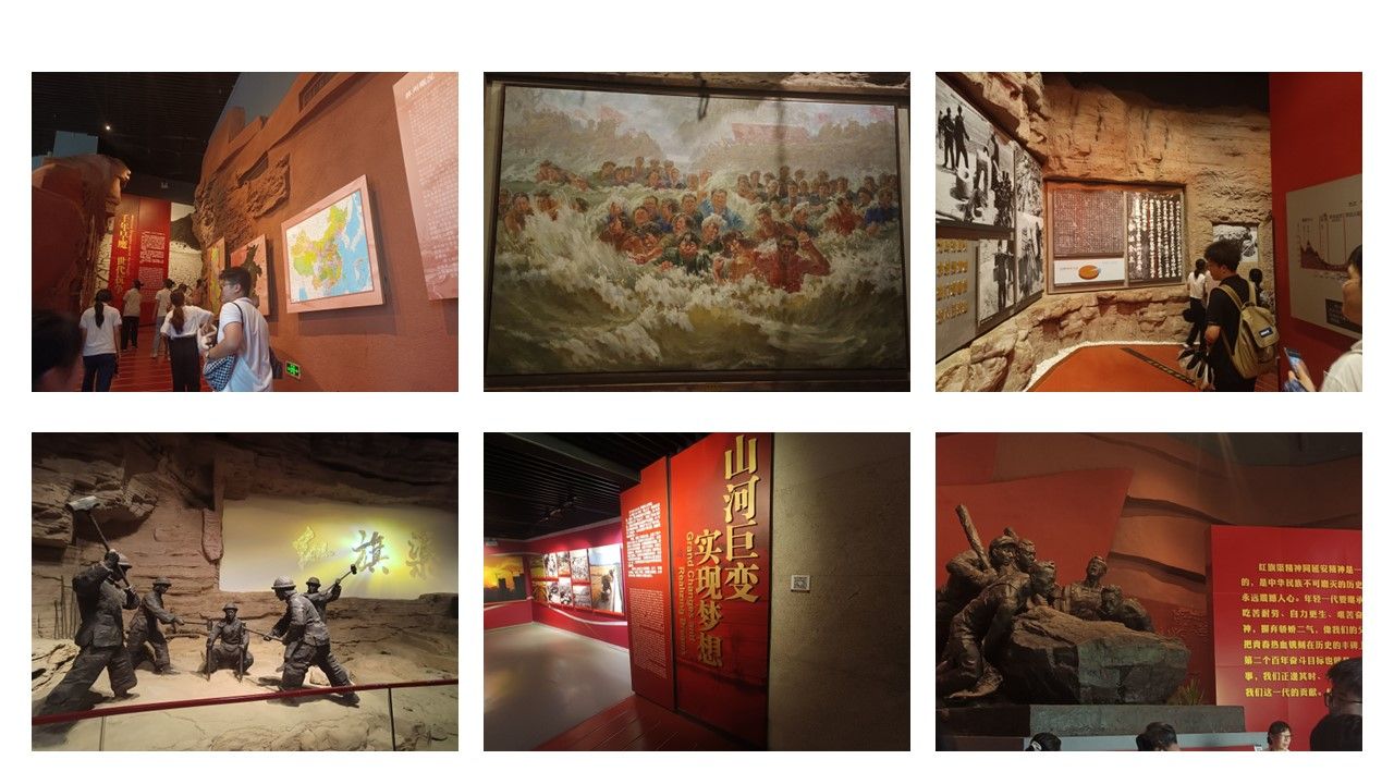 下午,实践队到达红旗渠纪念馆。展厅被打造成了红旗渠悬崖峭壁的场景,队员们通过观看一幅幅珍贵的历史照片、一件件往年的修渠文物,一座座生动的人物雕塑,身临其境地感知林州人民十年奋战,改造河山的震撼场景和宝贵精神。千百年来,林州人民始终怀有一个水的梦想,他们与千年旱魔世代抗争,最终在红旗引领下创造了“人工天河”的奇迹。红旗渠的英雄人民和精神丰碑,穿过历史的长河,生动地展现在实践队成员的眼前。自力更生、艰苦奋斗、团结协作、无私奉献的红旗渠精神,永远是一座丰碑,伫立在祖国的大地上,照耀着每一位青年的心。