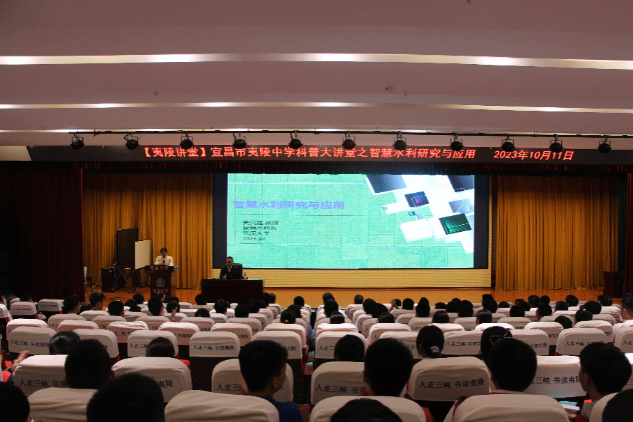 随后,史良胜教授以《智慧水利的研究和应用》为主题,为夷陵中学同学们作了一场精彩纷呈的讲座。他从人工智能的起源开始,到AlphaGo的研制成功,再到现在爆火的ChatGPT,接着引入人工智能在水利学科的应用,展示了学院在智慧水利领域的最新成果,层层推进,语言幽默风趣、深入浅出,将晦涩难懂的学术名词变得通俗易懂,学生们在讲座中如痴如醉,无不沉浸在知识的海洋中。