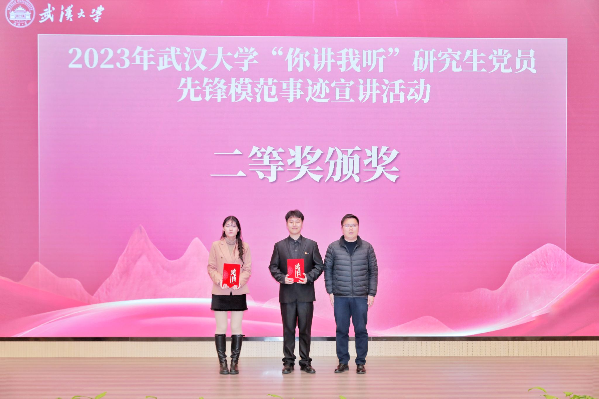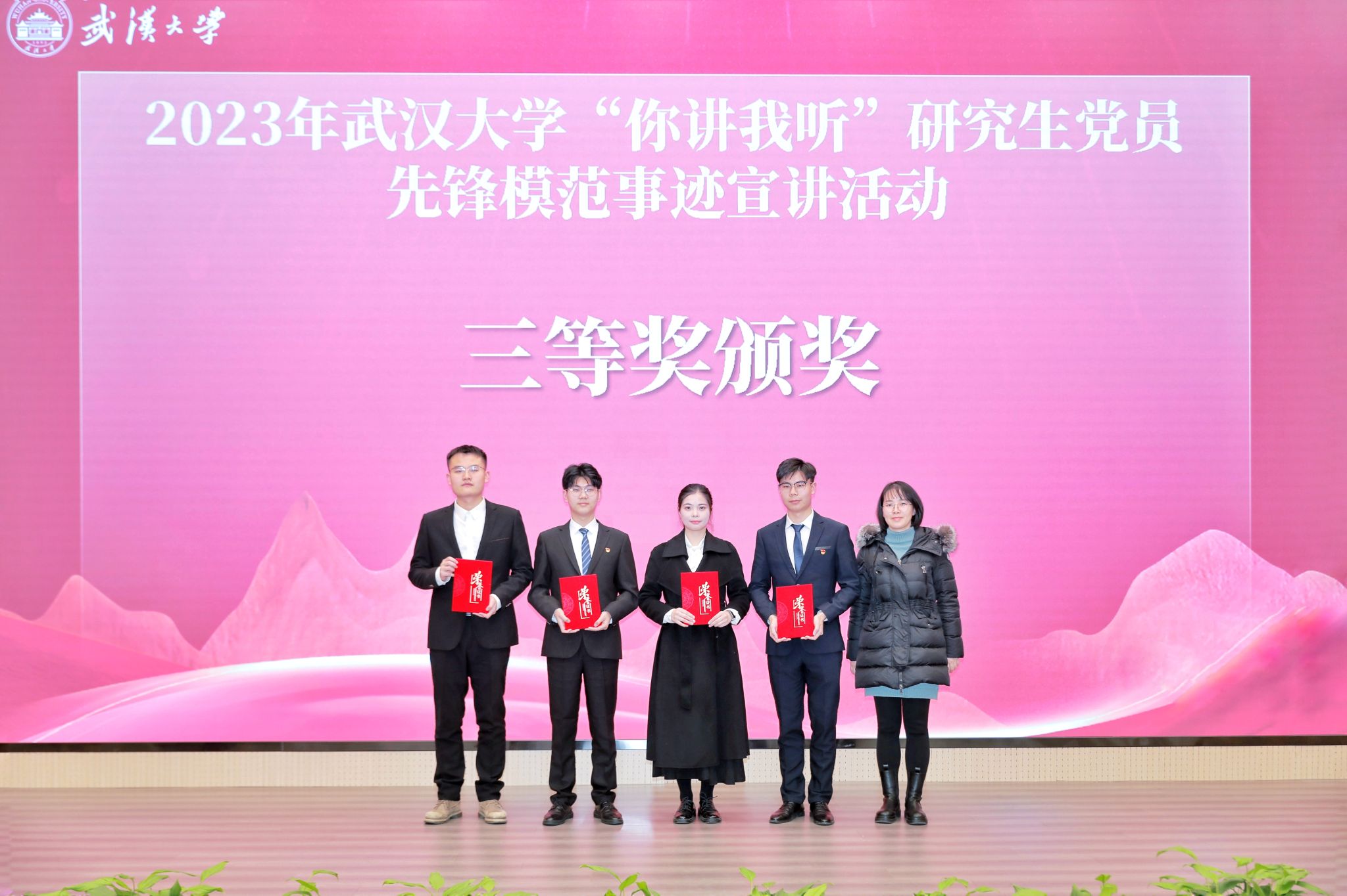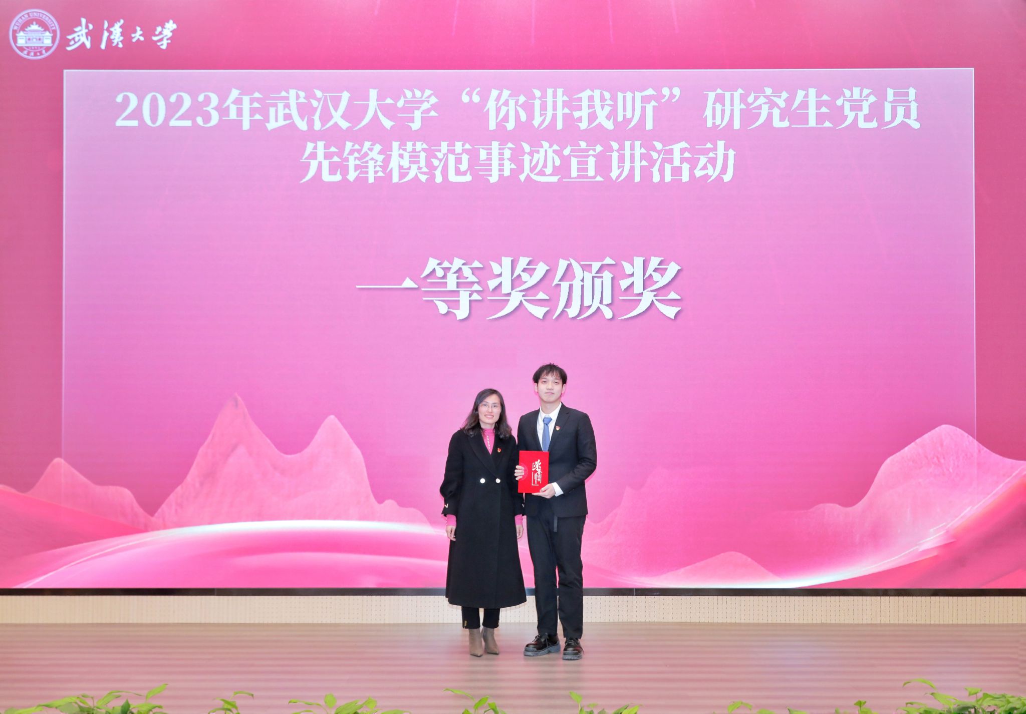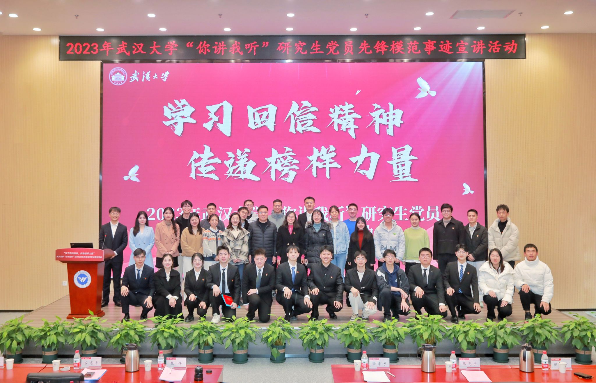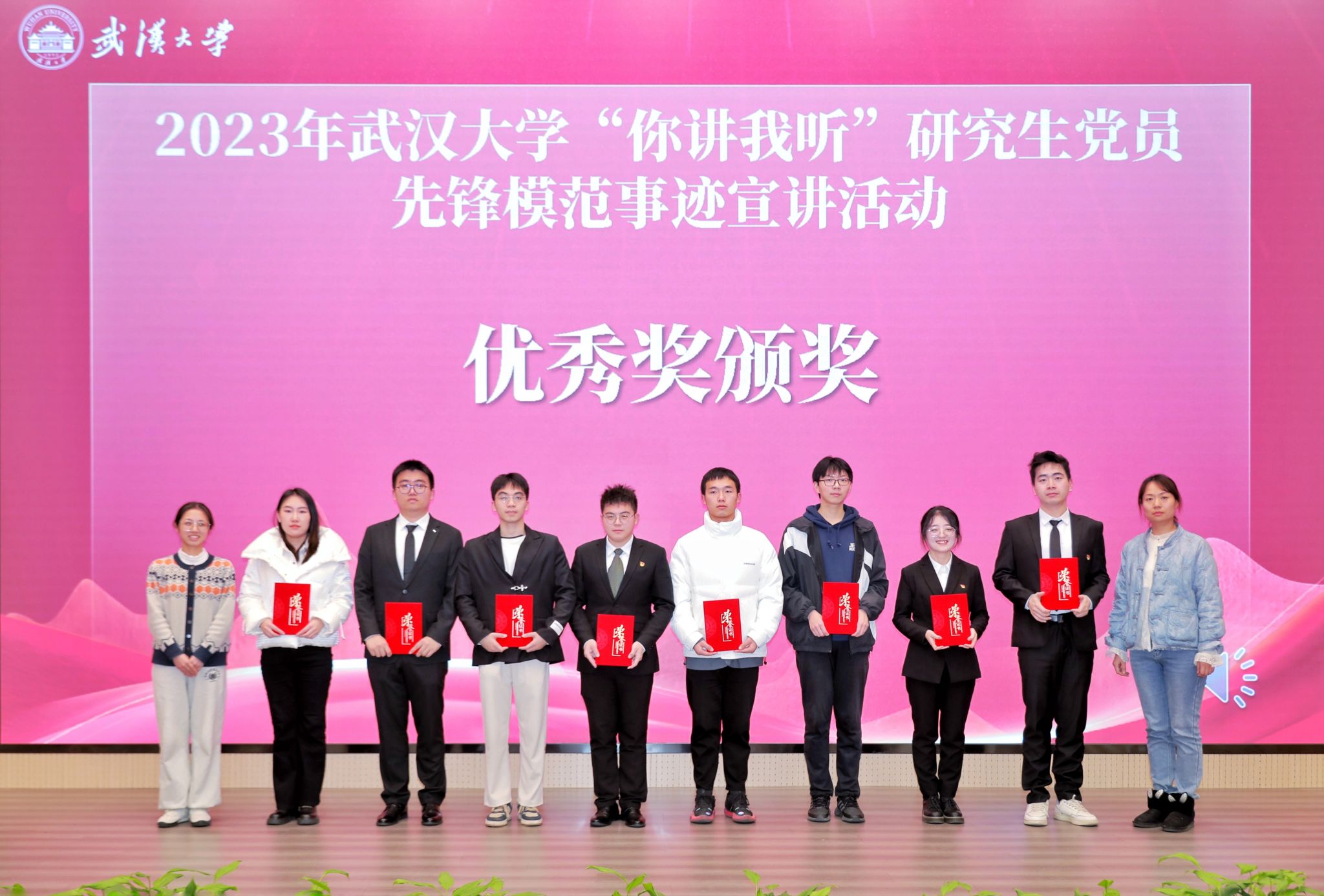 一个个故事聚沙成塔,集腋成裘,描绘出了新时代珞珈学子的精神风貌,书写了珞珈学子的责任与担当。宣讲人向他们宣讲对象送上鲜花,表达最诚挚的敬意。