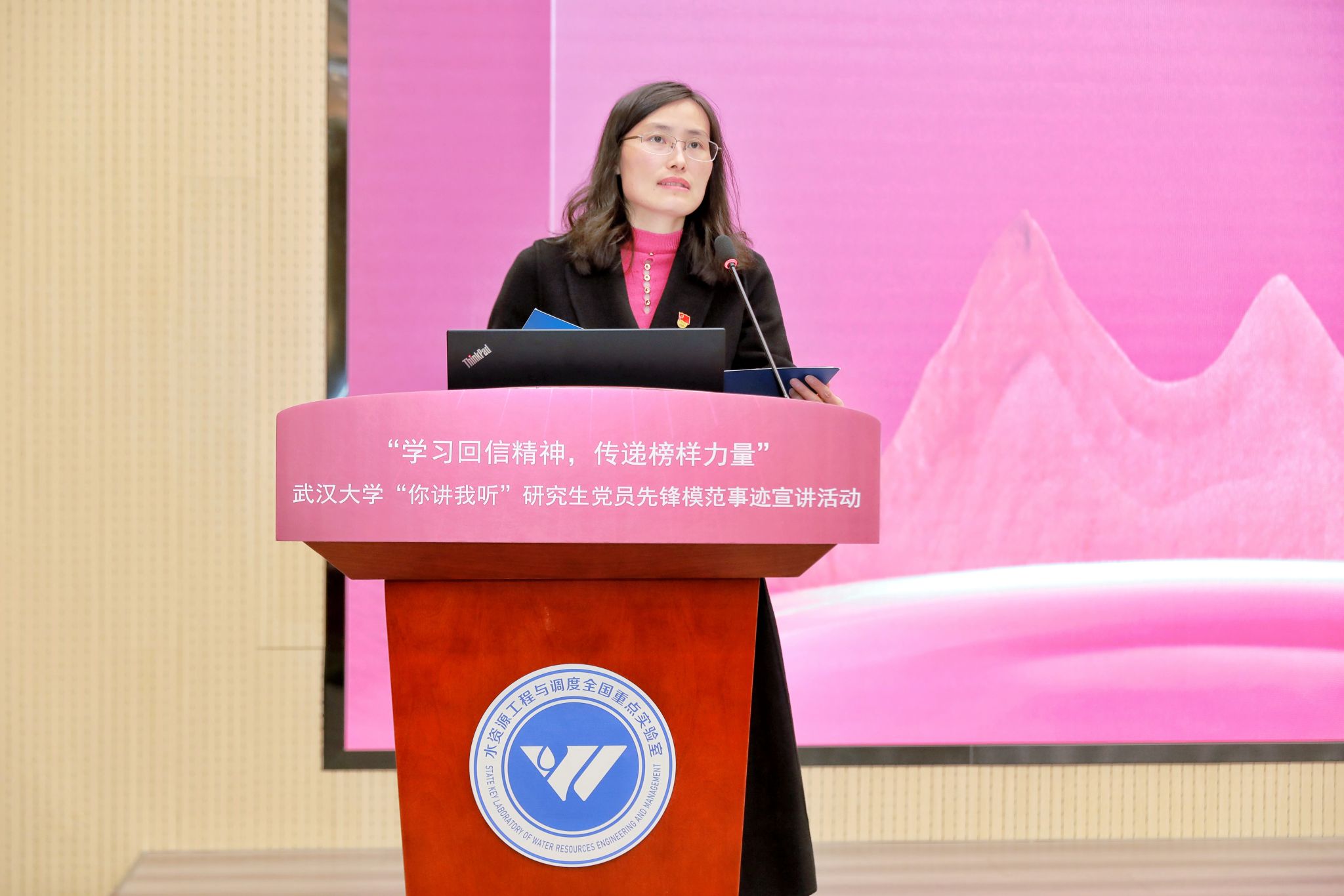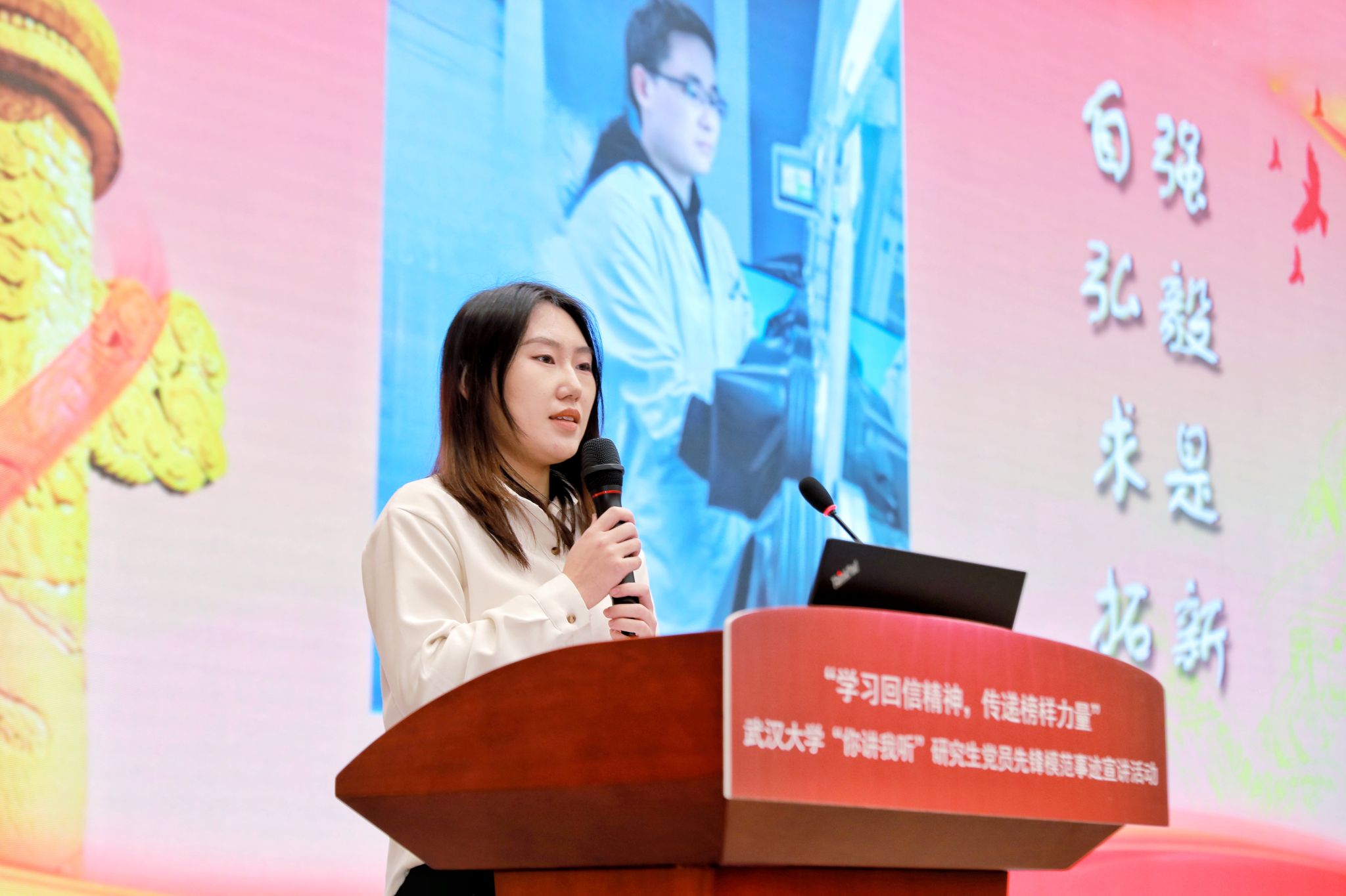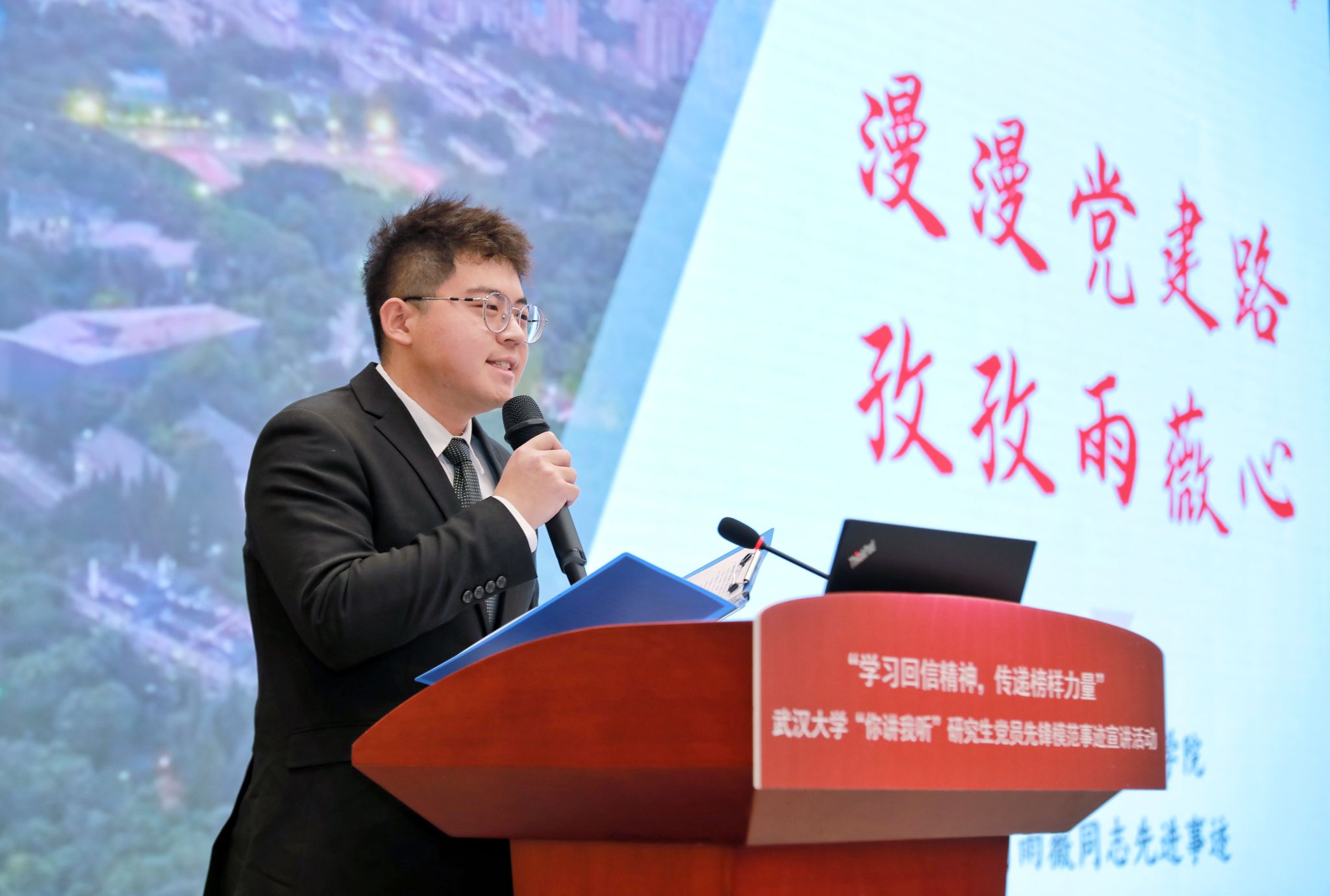 左志香在致辞中表示,此次活动以研究生党员先锋模范事迹为载体,通过“你讲我听”的展示形式,将身边优秀党员的先进事迹鲜活“讲”出来,以达到“见人见事见精神”的目的。希望广大同学们能够以学习习近平总书记重要回信精神为契机,从宣讲人和被宣讲的优秀榜样身上,汲取力量,志存高远,脚踏实地,努力在实现中华民族伟大复兴的中国梦的生动实践中放飞青春梦想。