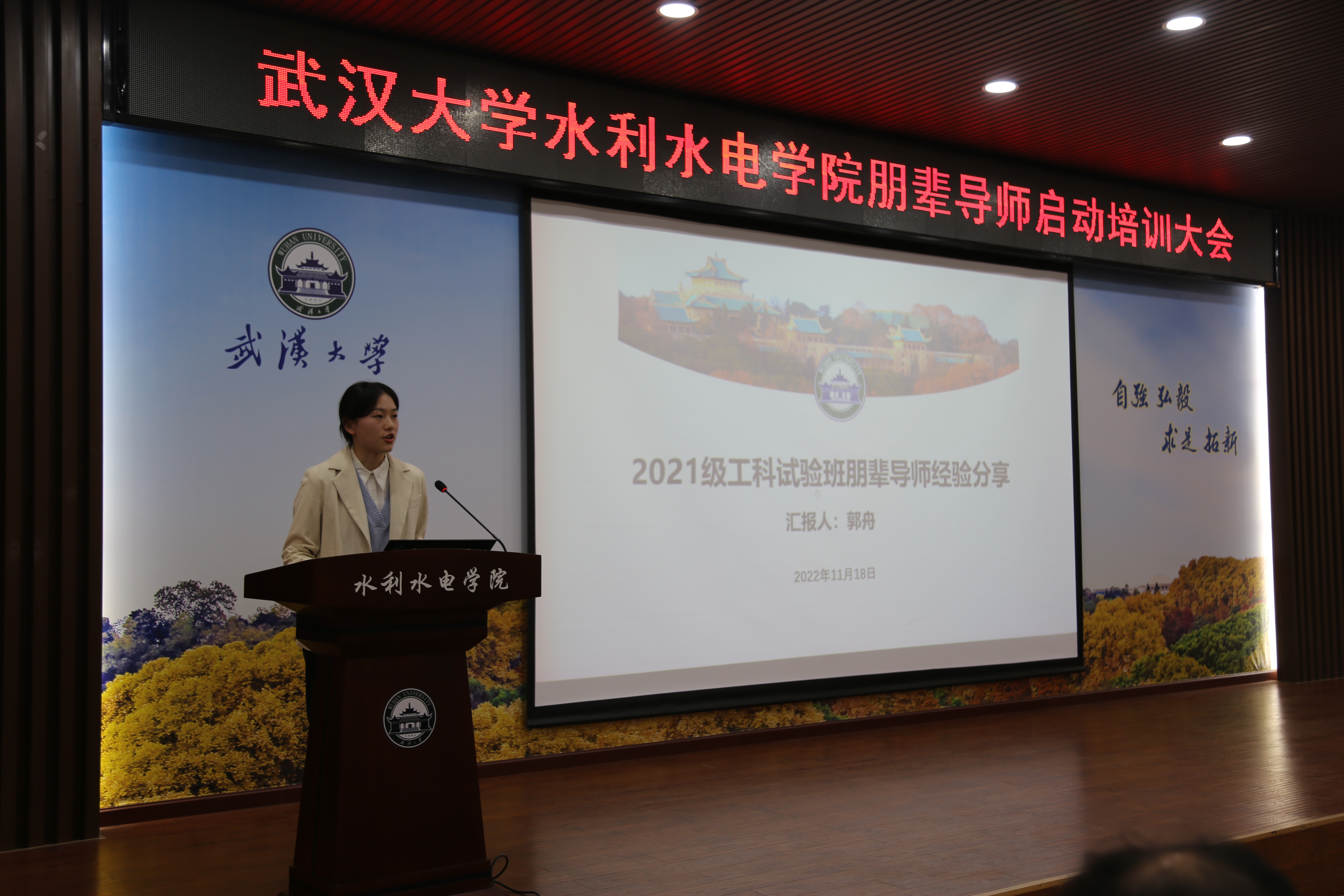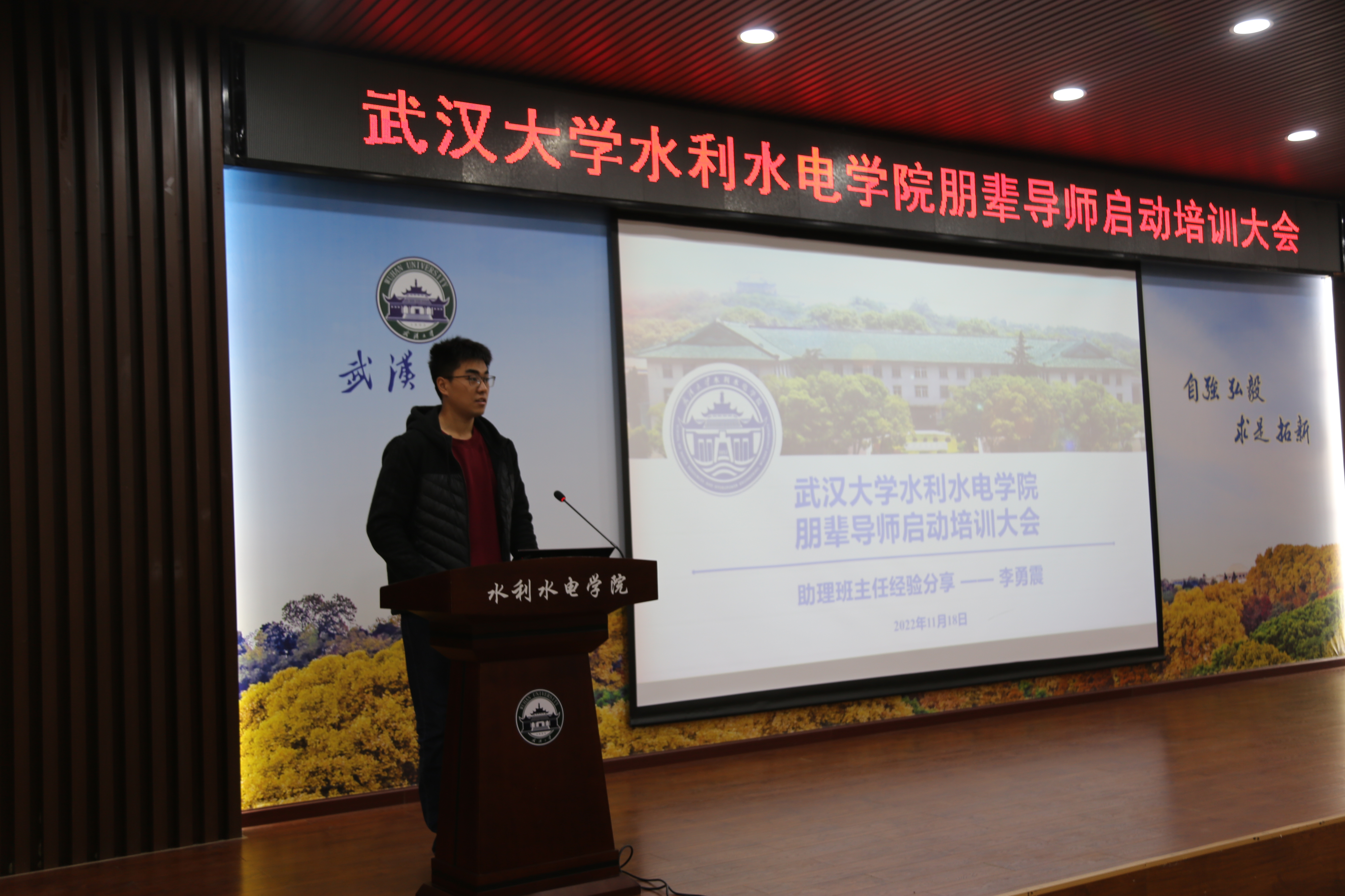 往届优秀朋辈导师代表郭舟同学和优秀助理班主任代表李勇震同学,结合个人工作经历的思考,分享了本科生特别是低年级学生的心理特点、加强有效沟通方法以及提升指导效果举措等方面,为新聘任朋辈导师开启工作提供了丰富实用的经验。