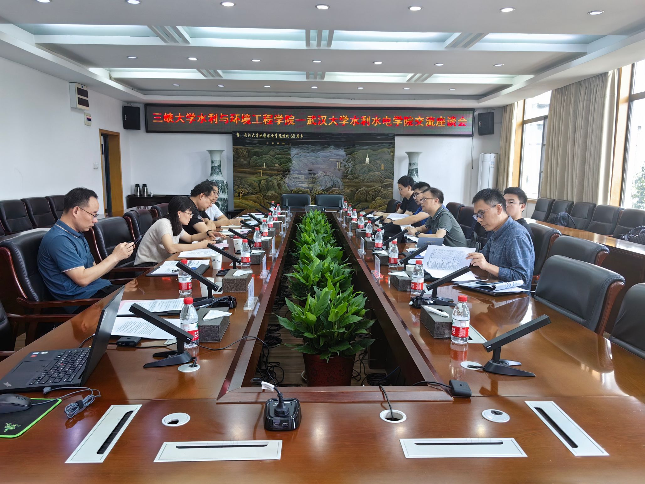 随后双方就专业改革整合问题、智慧水利专业人才培养方案、实验教学示范中心建设、招生就业工作、信息化项目管理等问题进行了深入调研。严鹏表示,三峡大学水利与环境学院的工作也给了我们很多启发。作为兄弟学院,双方一直保持着紧密的联系,具有深厚的合作基础,希望今后进一步加强交流合作,共谋发展。
