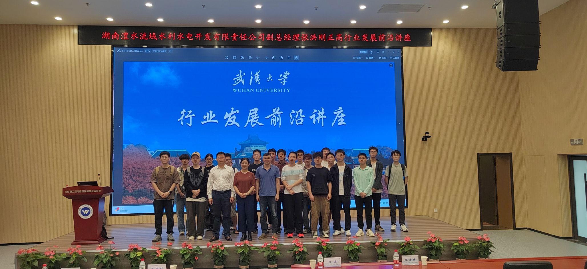 10月18日,《行业发展前沿讲座》首场讲座特邀湖南澧水流域水利水电开发有限责任公司张洪刚正高授课,他就“数字孪生江垭皂市工程建设实践与成效”主题进行了详细阐述。张洪刚正高介绍了数字孪生江垭皂市工程有关背景情况及建设成果,着重讲授数据底板搭建、模型库建设,以及工程安全分析预警、防洪兴利调度、生产运营管理、库区巡查、综合决策支持五大业务应用,讲解系统运用情况与应用成效。学院副院长伍靖伟介绍了行业发展前沿讲座的意义和目标,学院副院长(主持工作)刘攀为张洪刚正高颁发了《行业前沿发展讲座》纪念牌。