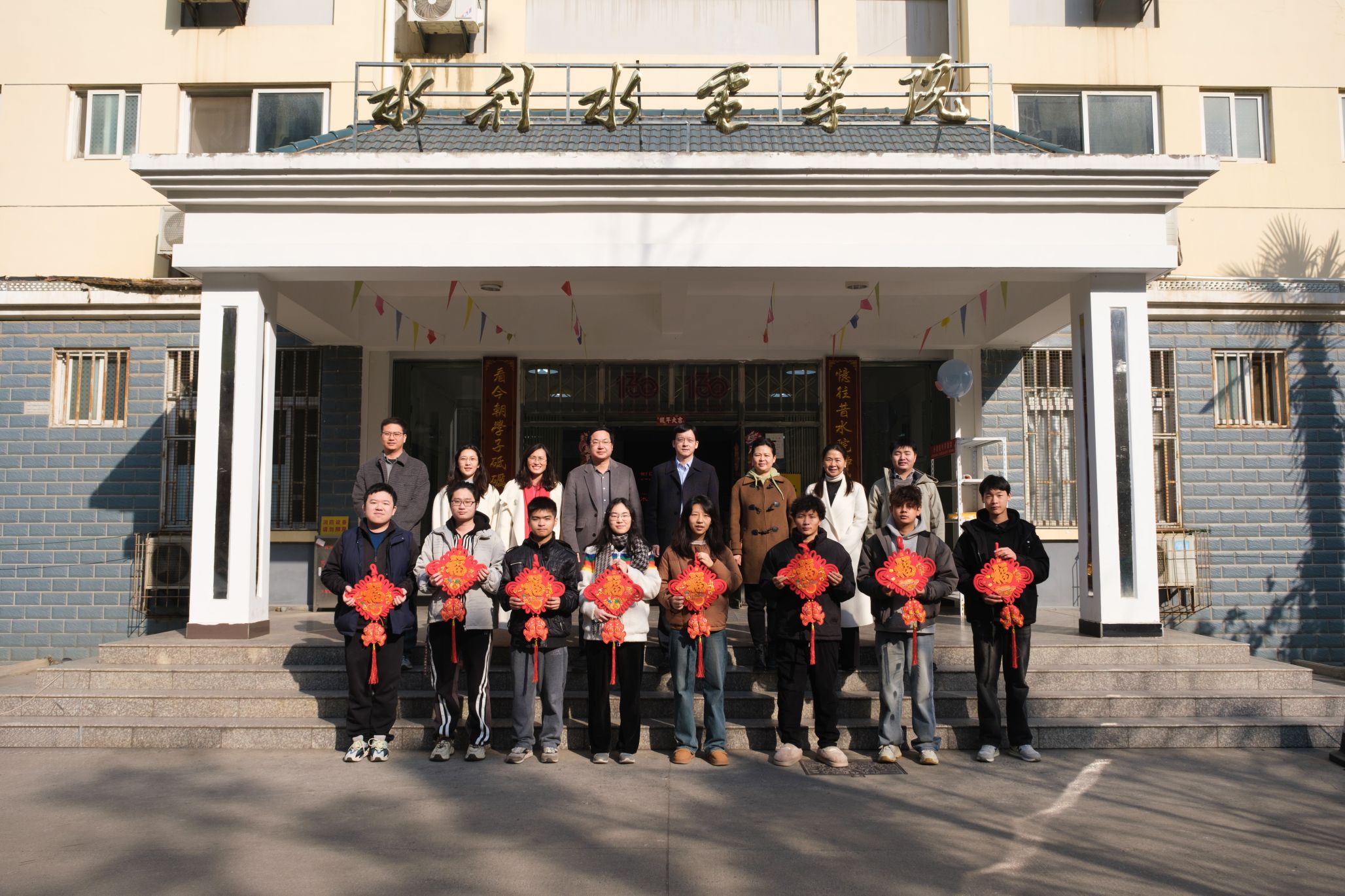 学院为每一位留校的同学派发了新春礼包。在宿舍门口,领导老师们与同学一起合影留念,共同庆祝即将到来的农历新年,也祝愿同学们在新的一年里腾飞图强,学业有成。