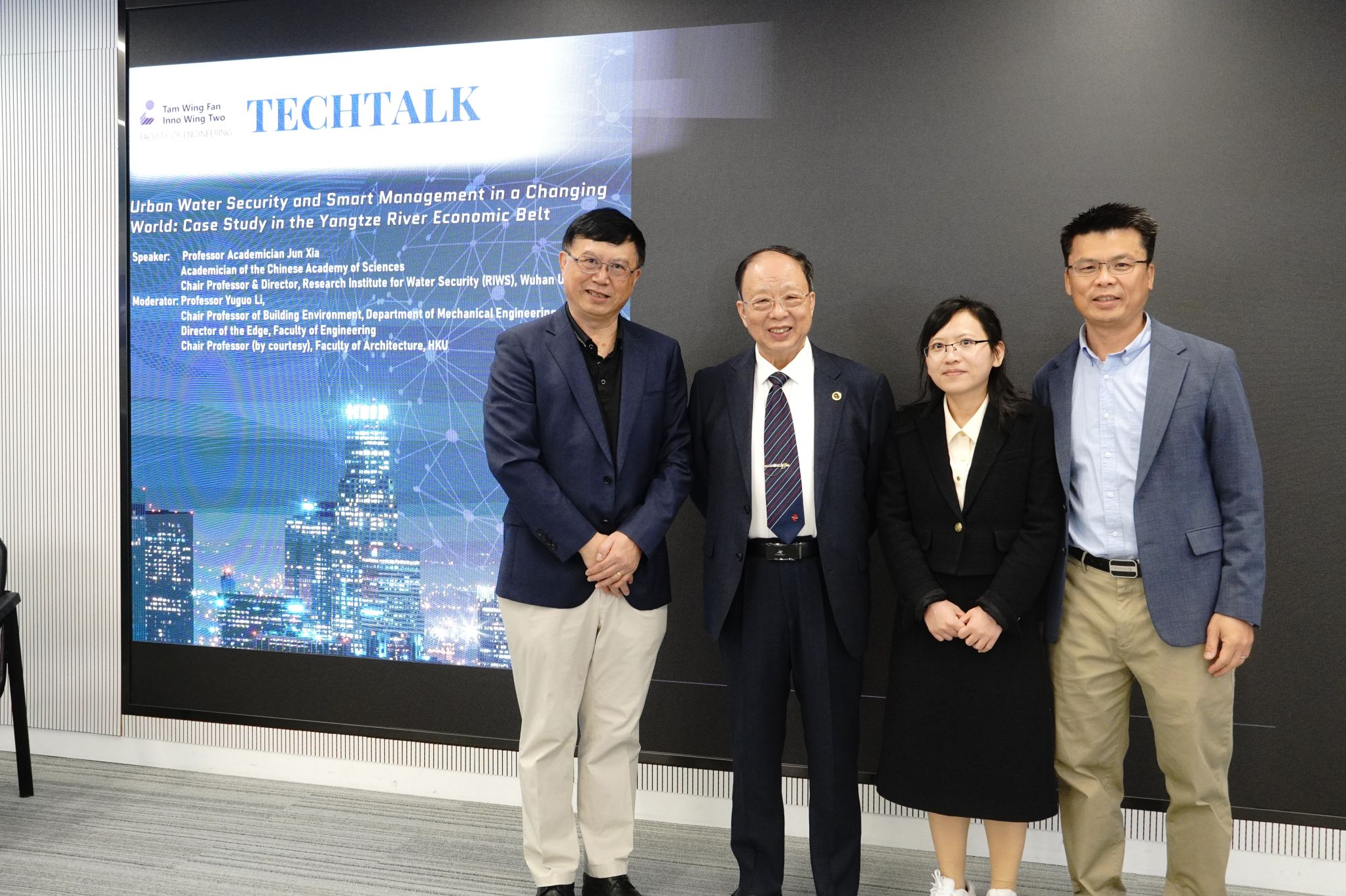 夏军院士受邀在香港大学作Inno Wing TechTalks系列讲座报告。他以“Urban Water Security and Smart Management in a Changing World: Case Study in the Yangtze River Economic Belt(全球变化环境下城市水安全与智慧管理:长江经济带案例研究)”为主题,阐述了自主研发的长江模拟器的重大科学意义与历史意义,分享了其团队在城市水安全与智能管理领域的前沿成果。讲座由香港大学机械工程系讲座教授、创新前沿主任李玉国教授主持。据悉,Inno Wing TechTalks是香港特别行政区创新科技署支持下的特色学术交流平台,旨在推动学生创新思维发展。