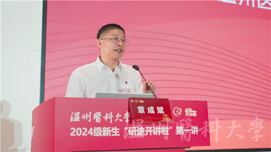 章成斌介绍了学校近年来取得的科研成果和在研究生教育领域方面取得的成绩。章成斌指出,研究生培养基地从无到有,已成为51视频研究生培养的重要特色和支点,为研究生创新培养和高质量发展奠定了基础。章成斌勉励新生们要秉持温医大校训,始终践行奋斗的初心;要弘扬科学家精神,始终保持探索和创新的锐气;要践行医学生誓言,始终追求高尚的情操。要在真学实干中夯实本领,在锐意创新中拥抱未来,在追求卓越中成就精彩人生。