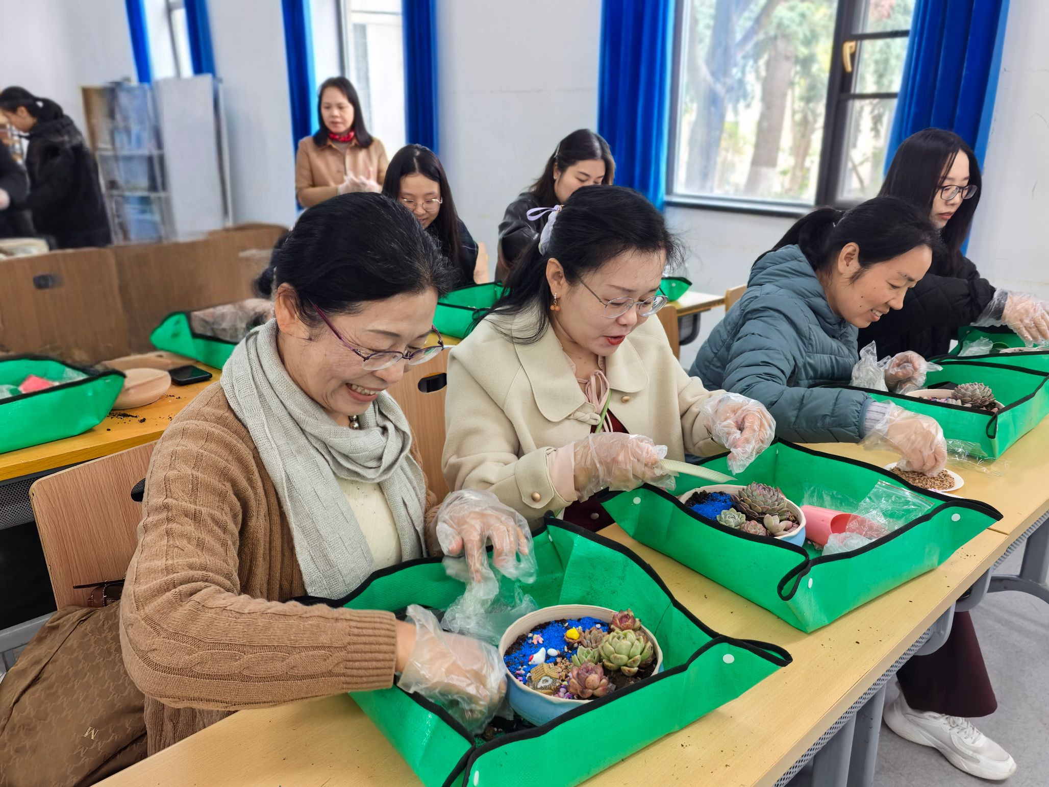 又是一年花开时,3月7日上午,为庆祝“三八”国际劳动妇女节,丰富女教职工精神文化生活,学院工会在学院8105组织开展一次多肉微景观DIY活动。