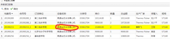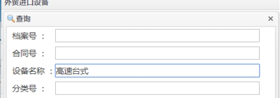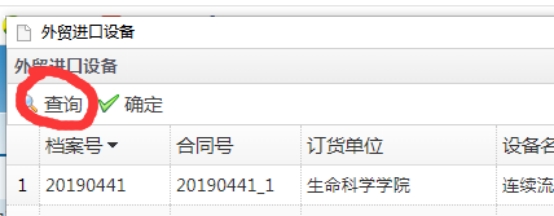 (1)通过查询功能根据设备名称或档案号查找相应设备;
