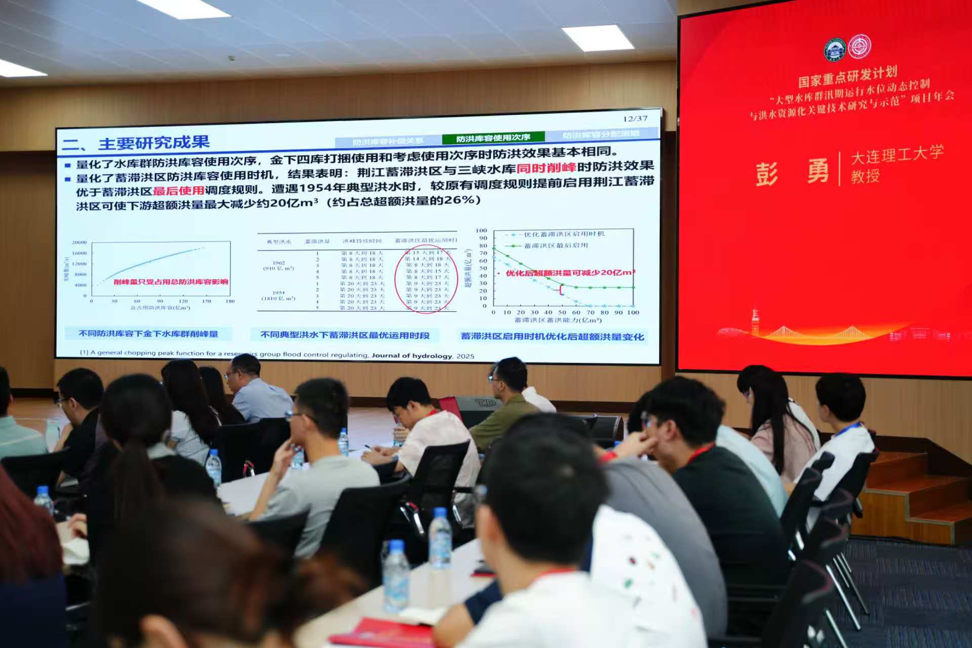 在课题汇报环节,各课题精选若干专题,凝练创新点,分别就“大型水库群运行期设计洪水与特征洪水理论方法”“水库群调控影响下多尺度来水广域信息挖掘与预测预报技术”“水库群汛期运行水位动态控制风险辨识与适应性调控技术”“大型水库群汛期运行水位全景动态调度及泄流自动控制装置技术”“大型水库群汛期运行水位全景动态调度及泄流自动控制装置技术”“大型水库群汛期运行水位动态控制与洪水资源化应用示范”五个课题聚焦当前面临的问题与挑战,汇报目前阶段已有成果。