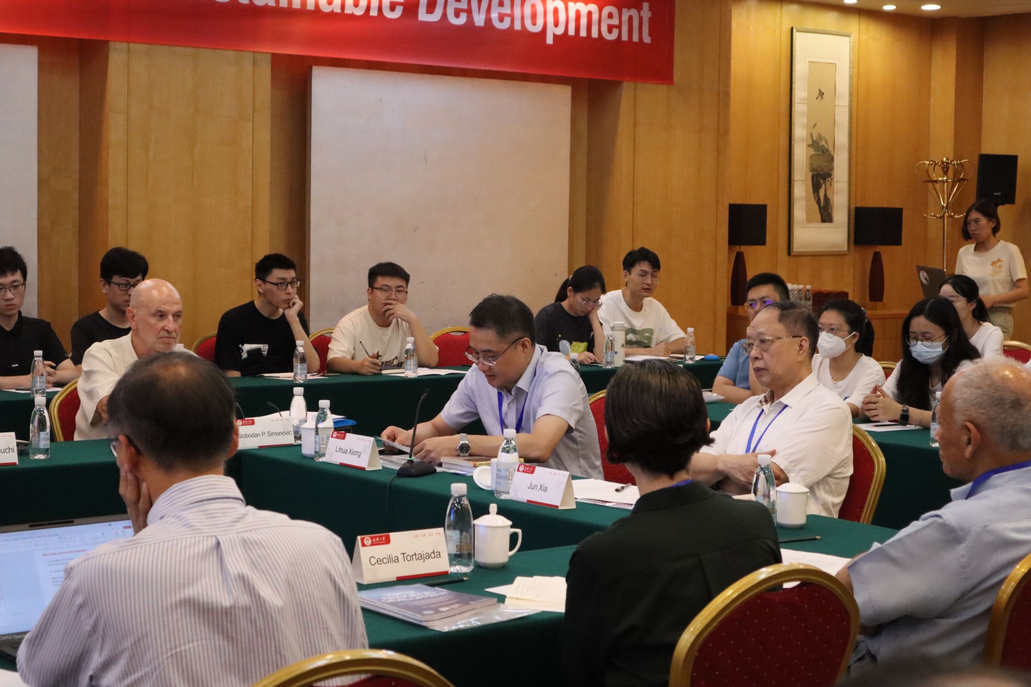 英国格拉斯大学Asit K. Biswas教授介绍了英国和新加坡在水资源管理方面的实践经验、困难挑战及未来构想,同时肯定了中国三峡等大型水利工程在水资源管理方面发挥的积极作用。随后,西安大略大学的Slobodan P. Simonovic教授、山梨大学的Kuniyoshi Takeuchi教授、格拉斯大学Cecilia Tortajada教授、伊利诺伊大学厄巴纳-香槟分校的Ximing Cai教授、以及奥斯陆大学的Nils Roar Sælthun教授针对气候变化下的水安全问题分享了各自的观点和相关研究成果,并展开了热烈讨论。