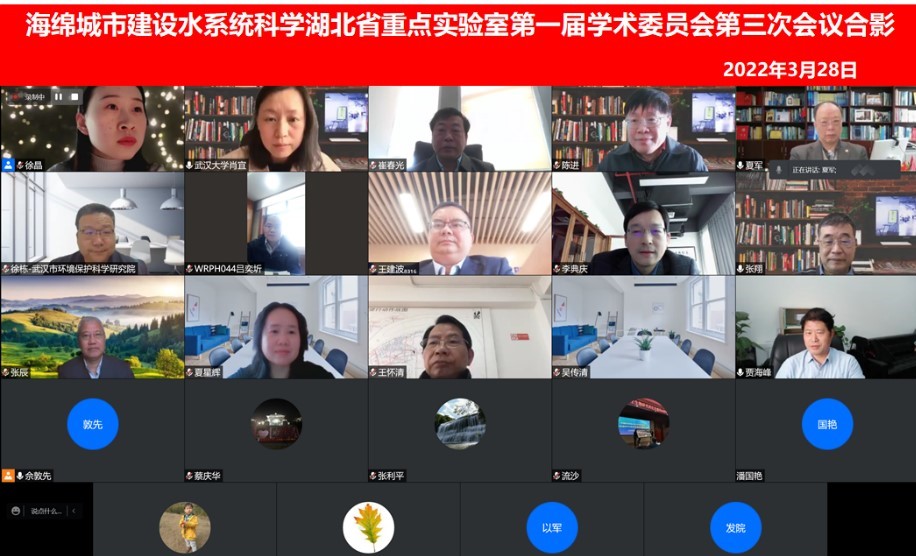 与会委员在高度肯定实验室2021年工作的同时,也对实验室今后的发展规划提出了建设性意见。委员们建议实验室进一步凝练创新点,产出高水平标志性成果,在海绵城市理论研究与实践两个领域进一步结合,围绕国家建设的实际需求,加强成果落地,扩大社会服务,在城市水安全管理、水环境治理、水生态修复等方面发挥更大的作用。随后,委员们审议通过了2021年度开放研究基金资助项目,并根据省科技厅发布的“关于召开湖北省重点实验室优化重组工作推进会议的通知”,对实验室优化重组方案提出了宝贵的建议,指出实验室仍需聚焦城市水科学和海绵城市建设,可进一步结合国家城市水安全重大需求及“十四五”海绵示范城市建设工作,在城市防洪与内涝治理、水污染防治与生态修复,海绵城市设施建设等方面深入开展科学研究与应用推广。张翔主任表示,实验室将认真听取委员们的意见与建议,发挥高等学校多学科交叉融合的优势,结合“十四五”规划,推进实验室更好发展,为国家及湖北省经济社会发展和学校“双一流”学科建设做出更大贡献。