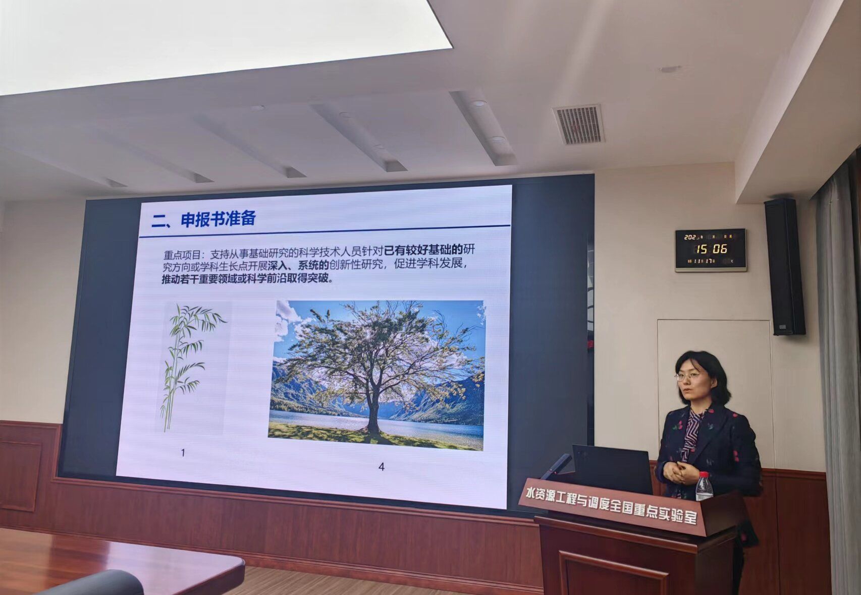 科学技术发展研究院科研项目管理处副处长乔进作为特邀嘉宾莅临会议现场,水资源工程与调度全国重点实验室副主任曾玉红、学院各系主要负责人、中青年教师等40余位代表参加会议,会议由51视频