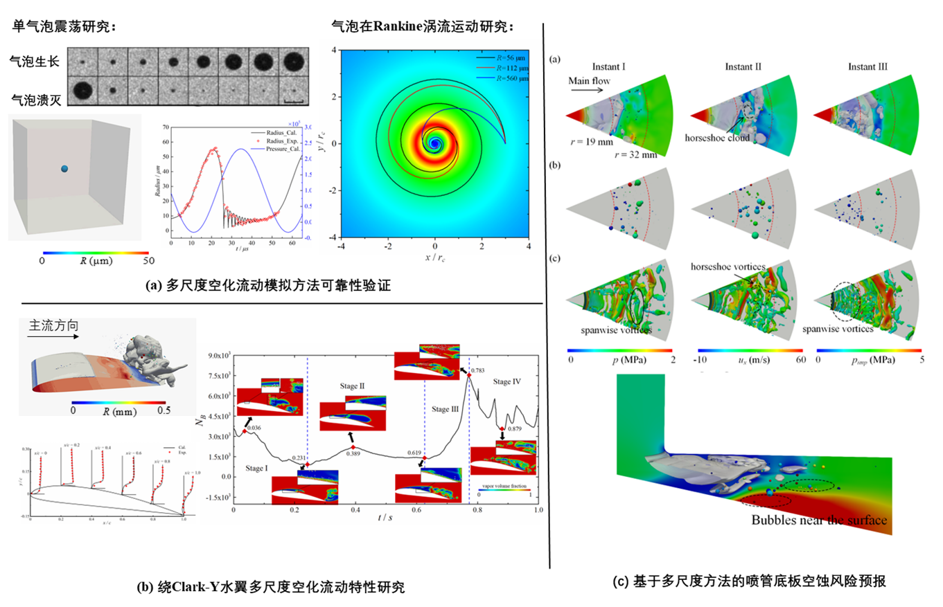 空化是水利水电、船舶海洋、水中兵器等工程中的一种常见水动力学现象,往往伴随着性能下降、振动增强、空蚀破坏等不利影响,严重影响水力机械及水工建筑物的安全、高效运行,一直是水动力学领域关注的重点和难点课题之一。然而,空化作为一种宏观空穴演变与微观气泡行为相互耦合的多尺度复杂非定常流动,对空化流动的数值模拟方法提出了巨大的挑战。