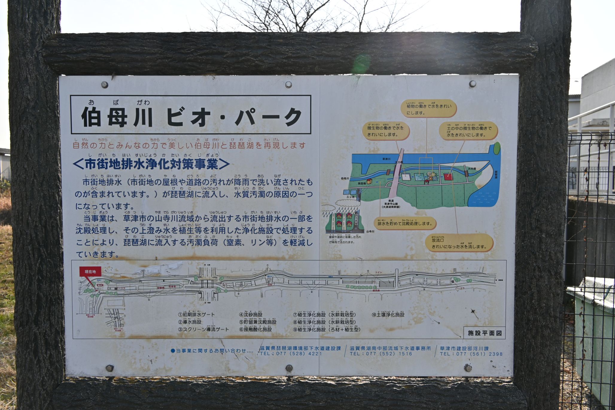 地上悬河(如今的草津川跡地公園)、 伯母川街道排水净化设施