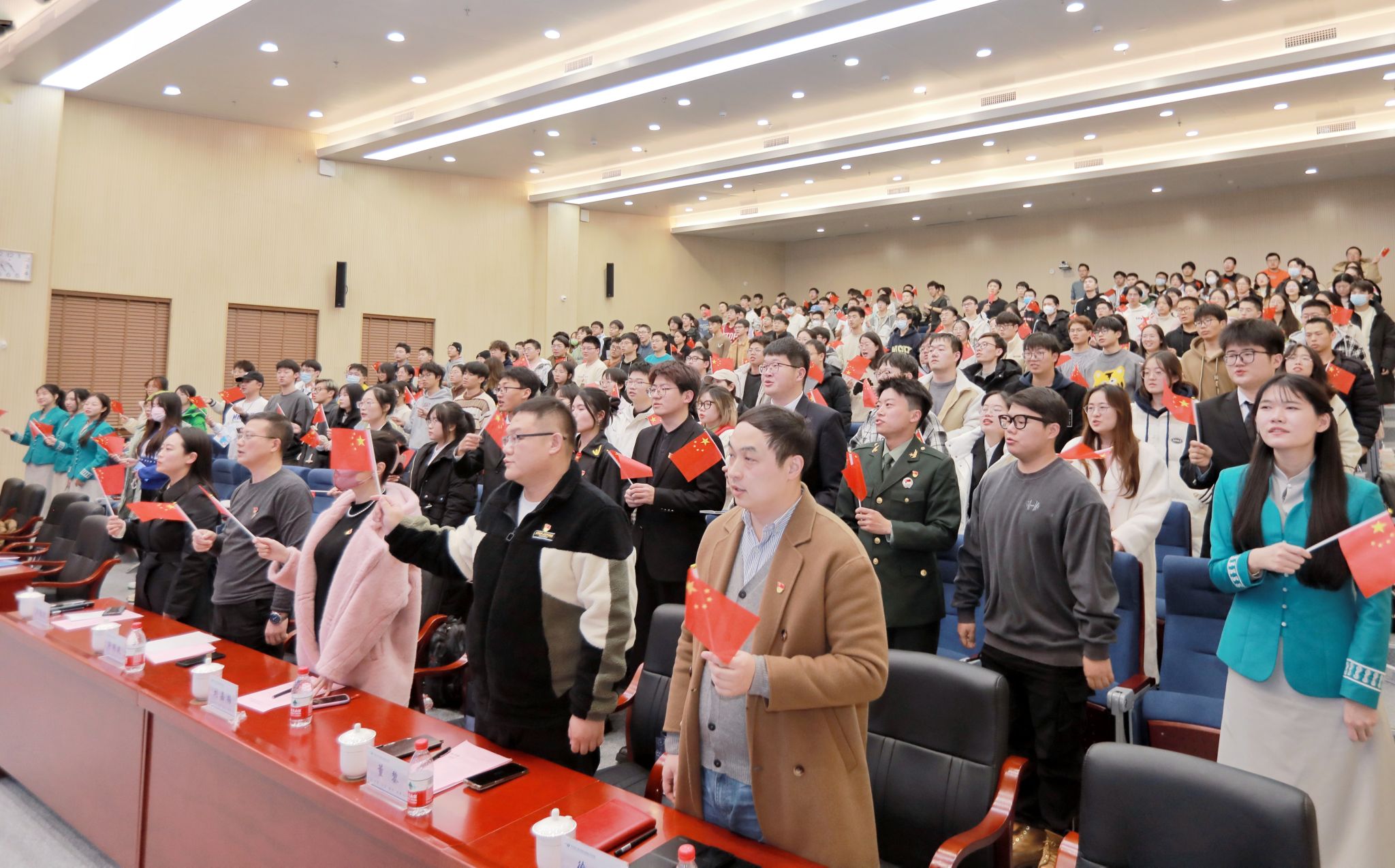 耿嘉骏、国家网络安全学院郭柯辰、政治与公共管理学院孟敬然、遥感信息工程学院肖景徽、法学院张敏等五位同学凭借优秀的表现荣获“党员之星”荣誉称号,颁奖仪式结束后,一首《我和我的祖国》在活动现场响起。师生齐唱这首熟悉的旋律,每个音符、每句歌词都承载着矢志不渝的理想信念,诉说着武汉学子对祖国的热爱与忠诚。