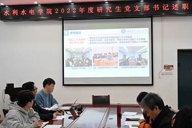 述职结束后,进行了现场评议。水力发电工程系研究生第七党支部、水文水资源系研究生第一党支部、水利工程系研究生第二党支部、水力发电工程系研究生第三党支部、水利工程系研究生第四党支部、水文水资源系研究生第四党支部、水利工程系研究生第一党支部的支部书记评议等级为“优秀”。