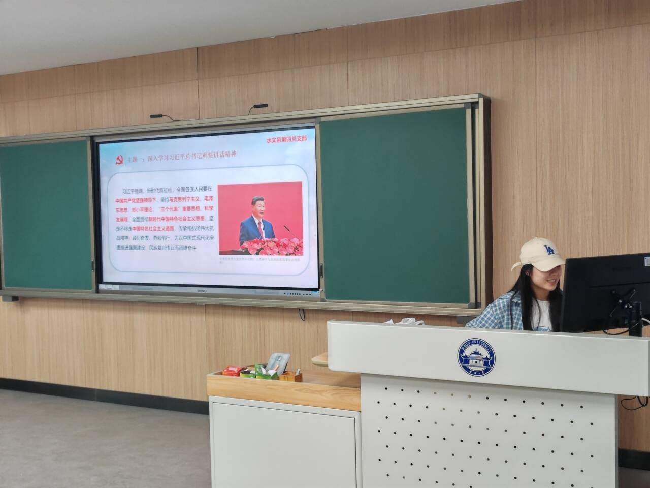 会议第一项议程,由王可心同志主持支部迎新会。来自不同地区的新生们依次上台,分享本科参与的小型流域水文模型构建、地下水污染模拟等科研项目,畅谈对主题党日、学术沙龙等支部活动的期待,还结合摄影、跑步等兴趣爱好,表达融入集体、共同成长的愿望。他们热情洋溢,朝气蓬勃,纷纷表示在今后的学习生活中,会时刻保持作为支部成员的自觉性,严格要求自己;同时,在人生新的开始,努力奋进,拼搏向上。此次迎新会为支部新老成员搭建交流平台,助力新生适应学习生活,成长为优秀水文人才。
