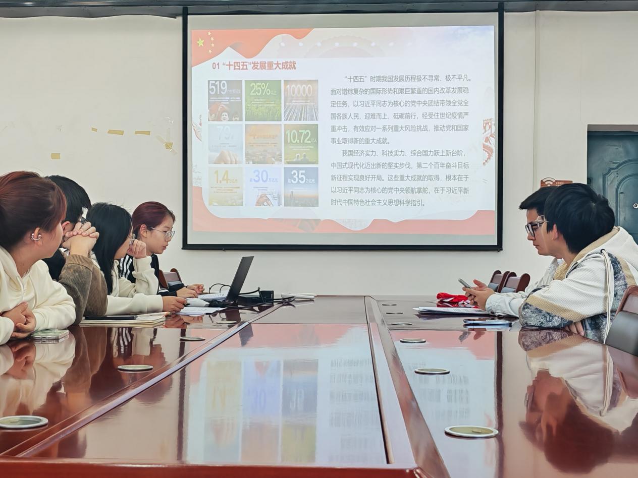 郝佳同志首先带领与会同志回顾了“十四五”时期我国发展极不寻常、极不平凡的历程。通过学习,同志们深刻认识到,面对疫情和错综复杂的国内外环境,以习近平同志为核心的党中央团结带领全党全国各族人民迎难而上、砥砺前行,推动党和国家事业取得了新的重大成就,经济实力、科技实力、综合国力跃上新台阶,中国式现代化迈出坚实步伐。同志们一致认为,这些成就的取得,根本在于党中央的坚强领导和习近平新时代中国特色社会主义思想的科学指引。