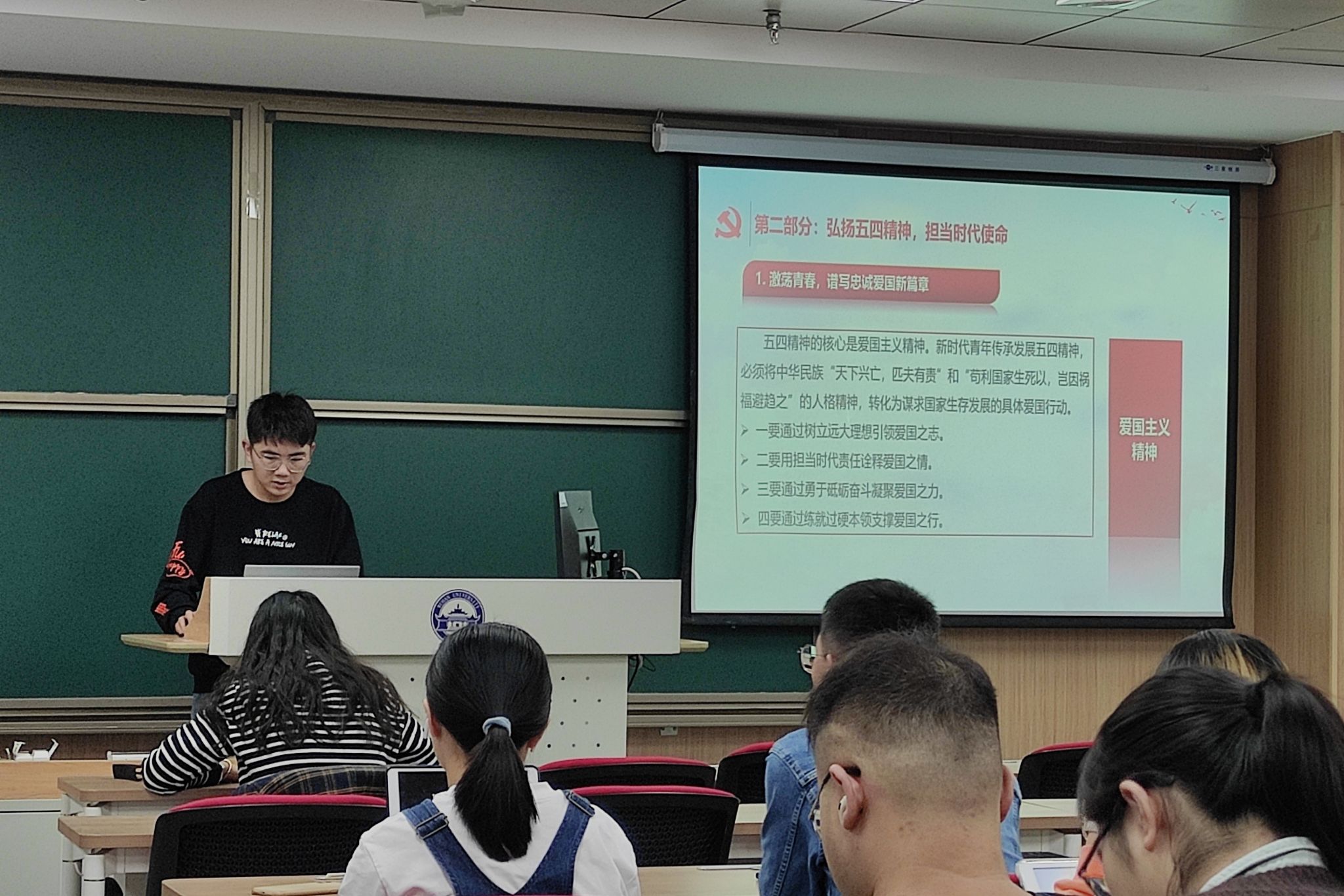 会议第二项,由林凡奇同志带领大家学习习近平总书记五四重要回信精神。从习近平总书记对各行各业青年的回信中可以看出,自党的十八大以来,以习近平同志为核心的党中央对青年一代无限关怀、对青年工作高度重视,特别是每逢五四,习近平总书记都会向青年致以节日问候、寄予殷殷嘱托。五四精神的核心是爱国主义精神,在读到习近平总书记的回信时,同学们纷纷表示要发扬五四精神,做科学和真理的追求者,百折不挠、勇往直前,让青春在创新创造中闪光。