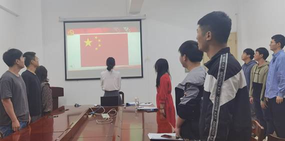 会议第二项为姚洪成同志的转正大会。首先由组织委员彭涛同志清点到会正式党员人数及入党材料;随后姚洪成同志向党支部汇报了自己在预备党员考察期间的表现,并宣读转正申请书;姚洪成同志预备期间的考察人舒奕展、朱瑾同志对其在预备期间的情况进行介绍,与会孔凌浩和郑源等同志也就姚洪成同志的转正问题发表了自己的意见;水力发电工程系研究生第四党支部结合最近召开的两会的相关热点问题对姚洪成同志进行了考察,姚洪成同志阐述了自己对“坚持党的全面领导是坚持和发展中国特色社会主义的必由之路”的认识;最后,经支部大会表决,姚洪成同志如期转为中共正式党员,并由位需贝同志带领姚洪成同志宣誓。