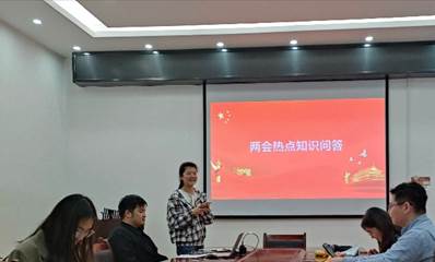 随后,支部书记邵欣欣同志与组织委员张仲谋同志从与两会相关的热点问题题库中选出30道题,以问答竞赛的方式鼓励同学们学习两会知识,支部成员踊跃参与其中。支部成员对于两会以及时政热点问题较为了解,能够迅速抢答并给出正确答案。最后董建华同志脱颖而出,在知识问答环节中拔得头筹。以知识问答的形式进行两会知识的学习,一方面鼓励了支部成员关心国计民生,另一方面也增进了支部成员的互动,有效地增强支部的活力与凝聚力。