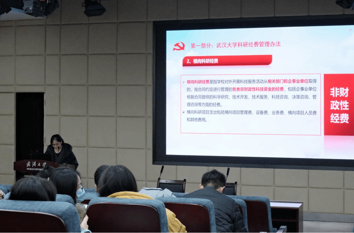 科研经费管理办法》,从纵向科研经费、横向科研经费以及科研项目资金使用的禁止行为三个方面强调了科研经费管理和使用的规范。然后讲解了《中华人民共和国保守国家秘密法》的具体条款,提醒支部成员保守国家秘密的重要性。