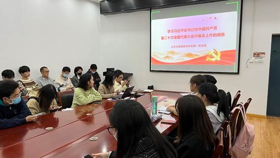 2022年10月28日14时,水文水资源系研究生第一党支部在工学部8教111会议室召开了十月组织生活会。本次会议包括三项议程:一、深入学习习近平总书记在中国共产党第二十次全国代表大会开幕会上作的报告;二、进行党支部心理委员选举;三、讨论钟斯睿同志的发展问题。会议由徐诗恬同志主持,党总支联系人邱钦焱参加了本次会议。
