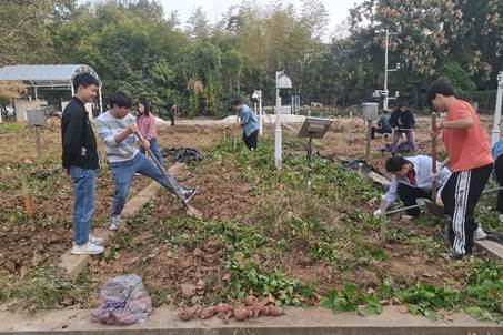 水利工程系研究生第一党支部联合吴天祥小组和部分本科生于2022年11月5日下午在灌溉排水综合试验场开展了挖红薯实践活动。