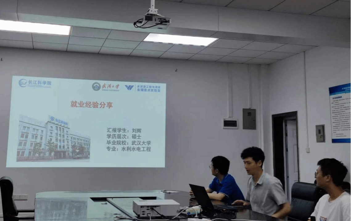 会议的第三项议程是由刘辉同志带来的就业经验分享,主要针对铁四院和长江科学院的求职过程进行了详细的介绍。