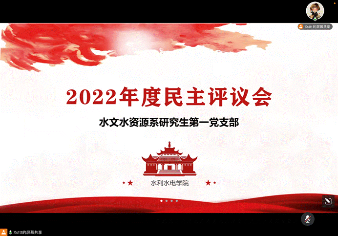 2022年12月26日14时,水文水资源系研究生第一党支部通过线上会议召开十二月组织生活会。本次会议包括两项议程:一、学习江泽民同志的生平;二、召开本年度支部党员民主评议会。本次组织生活会由徐诗恬同志主持。