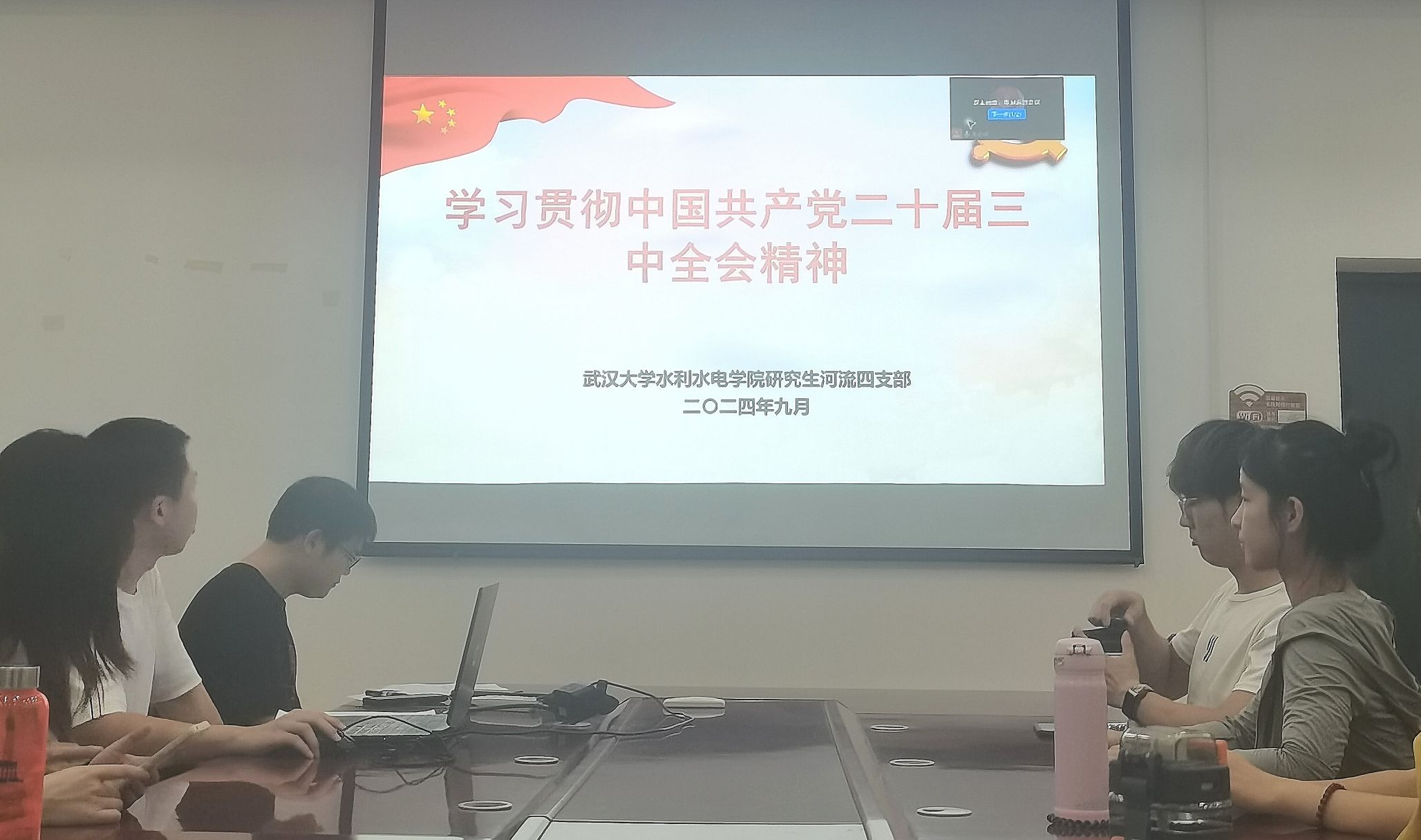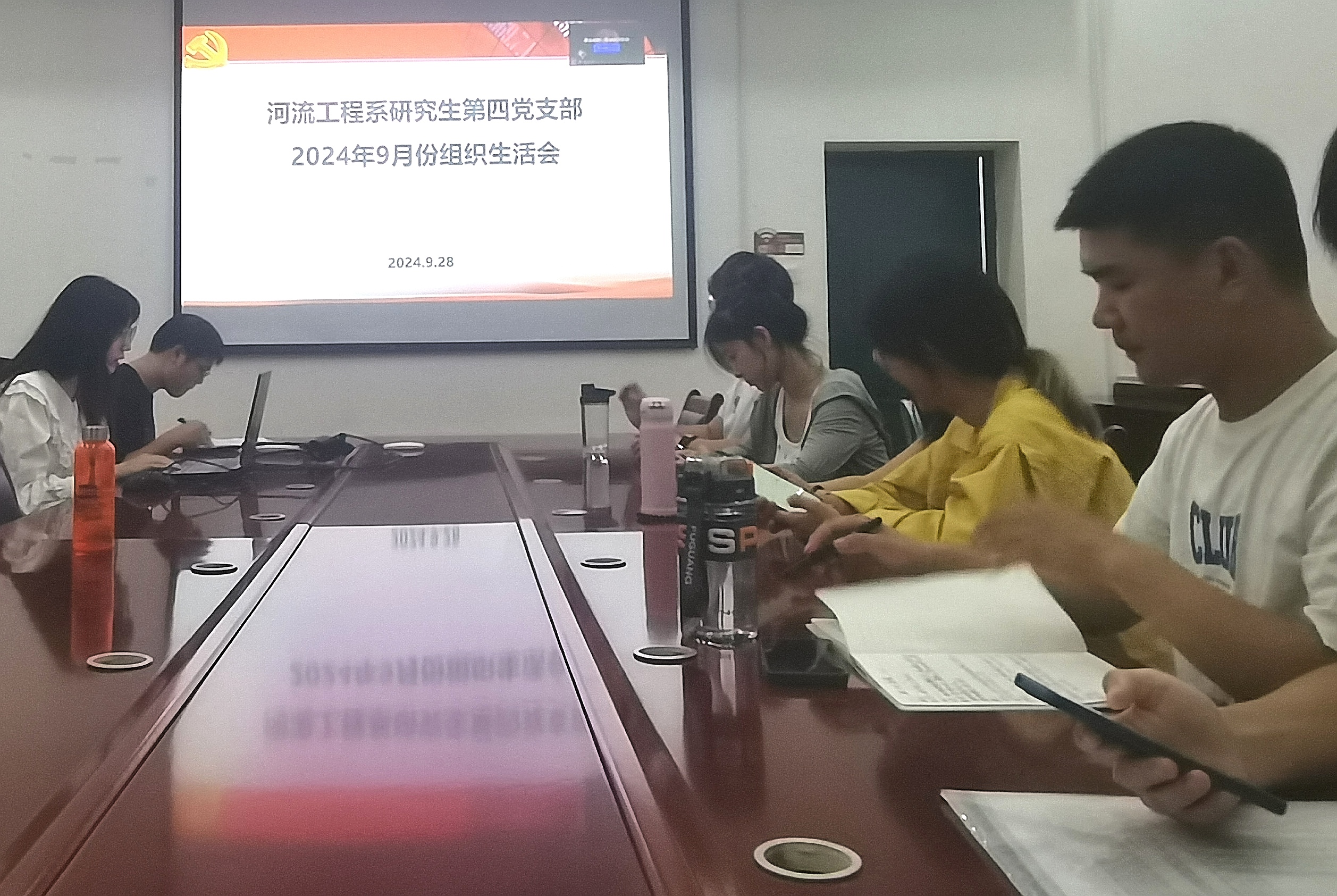 2024年9月28日晚7:00,河流工程系研究生第四党支部在工学部八教8111会议室召开9月份组织生活会,本次会议涵盖三个方面的主题:一是弘扬丝路精神,从“一带一路”感悟中国之治;二是涵养新时代中国青年的精气神;三是学习科研经费管理方法、保守国家秘密法等相关知识。本次会议由党支部书记吴珈莹同志主持,19名正式党员、5名预备党员、6名发展对象及入党积极分子、8名共青团员出席本次组织生活会。