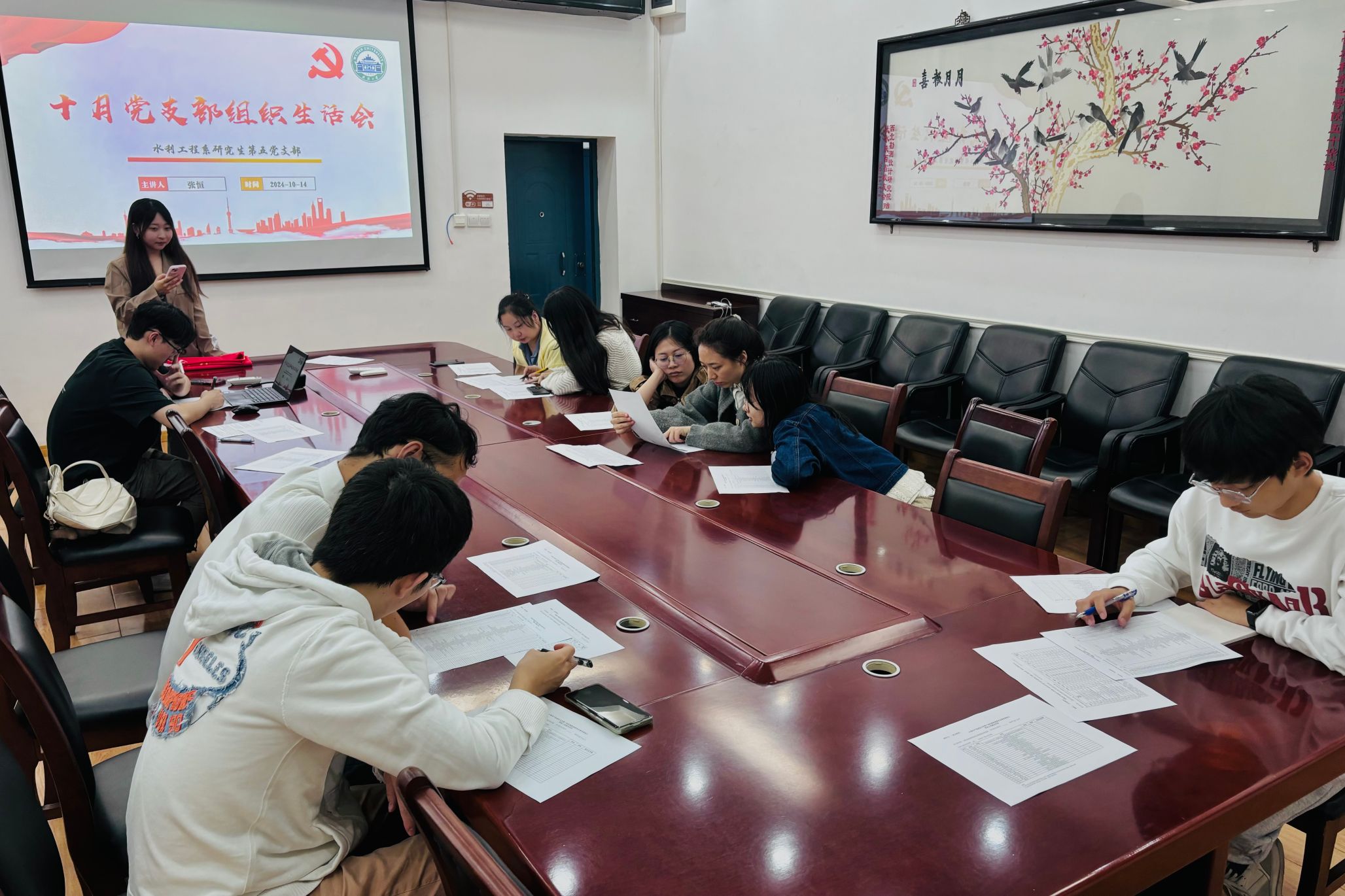 2024年10月14日下午8点,水利工程系研究生第五党支部十月组织生活会暨党员大会在工学部八教8111会议室顺利召开。会议由党支部书记魏含津同志主持,支部全体成员参加本次会议。会议包括三部分内容:一是学习习近平总书记在全国教育大会上的重要讲话精神;二是观看国庆主题视频,共话祖国七十五载奋进路;三是党员大会,讨论提名51视频