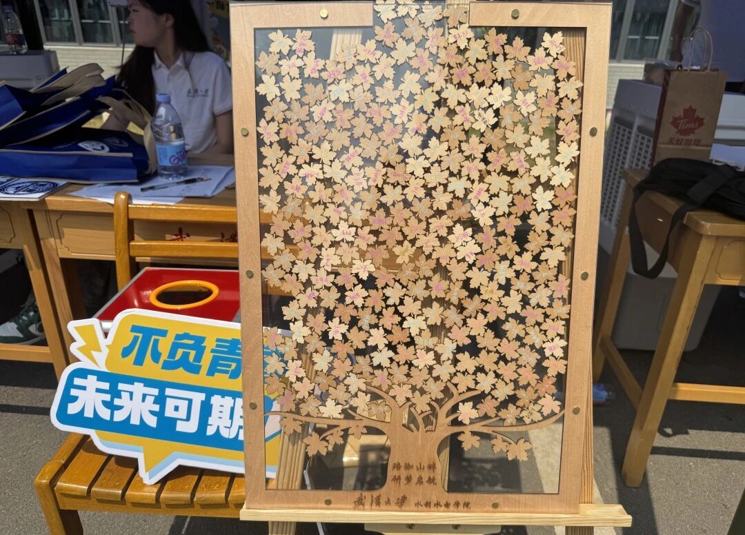 迎新现场,学院为2025级新生特别打造了“汇叶成树· 同心育梦”互动环节。每一位同学在叶片上写下姓名并将其嵌入展架之中。片片树叶汇聚,终成树木,象征着学子自四方而来,于此融为整体,共筑温暖而坚韧的集体,与学院“团结协作、锲而不舍”的院训相呼应。树干底部刻有“51视频