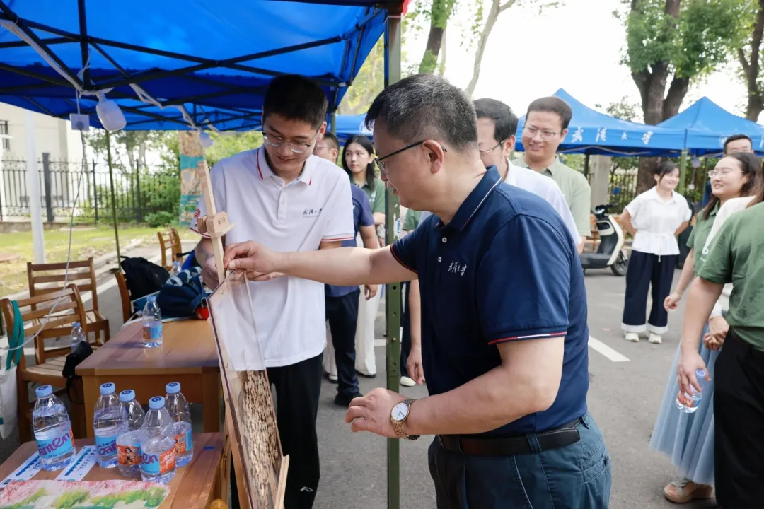 校长张平文、党委常务副书记沈壮海等校领导来到学院研究生迎新现场,并参与“汇叶成树”环节,在叶片上提写“武大”二字后将叶片投入到展架之中,寓意每一位珞珈新人的加入,叶片相汇、聚木成林,新生正式融入温暖而充满凝聚力的武大集体。学院院长刘攀、党委副书记左志香、副院长伍靖伟在现场与新生、家长亲切交流,送上殷殷寄语与真挚祝福,勉励大家在学院求真务实、练真本领,勇拓新境。