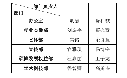 研究生会部门负责人任职公示: