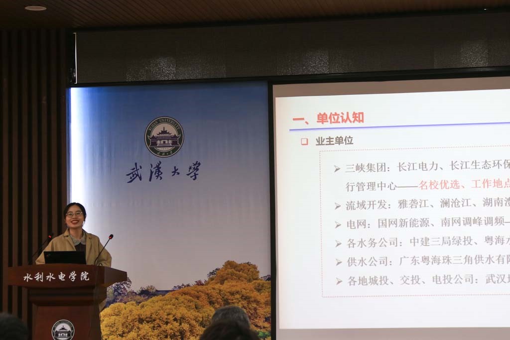 杜菘同学认为水利行业的求职特点为“快”、“专”、“简”,即行业整体就业节奏快,专业性较强,流程较简单。他结合自身经历重点讲述了各省“选调生”的考核要求以及备考流程,鼓励有意向的同学早做准备,加强积累,提升能力。