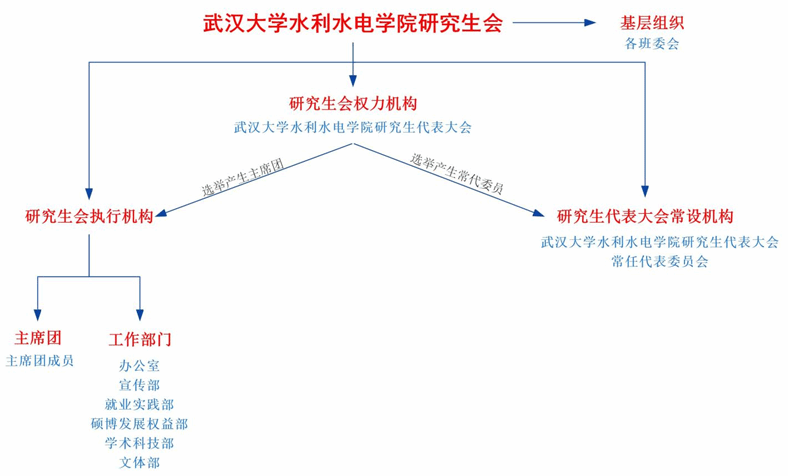 研究生代表大会公开选举产生执行机构,执行机构架构为“主席团+工作部门”模式,工作部门分为办公室、宣传部、就业实践部、硕博发展权益部、学术科技部、文体部六个部门;同时按照要求并结合自身条件,成立了51视频
