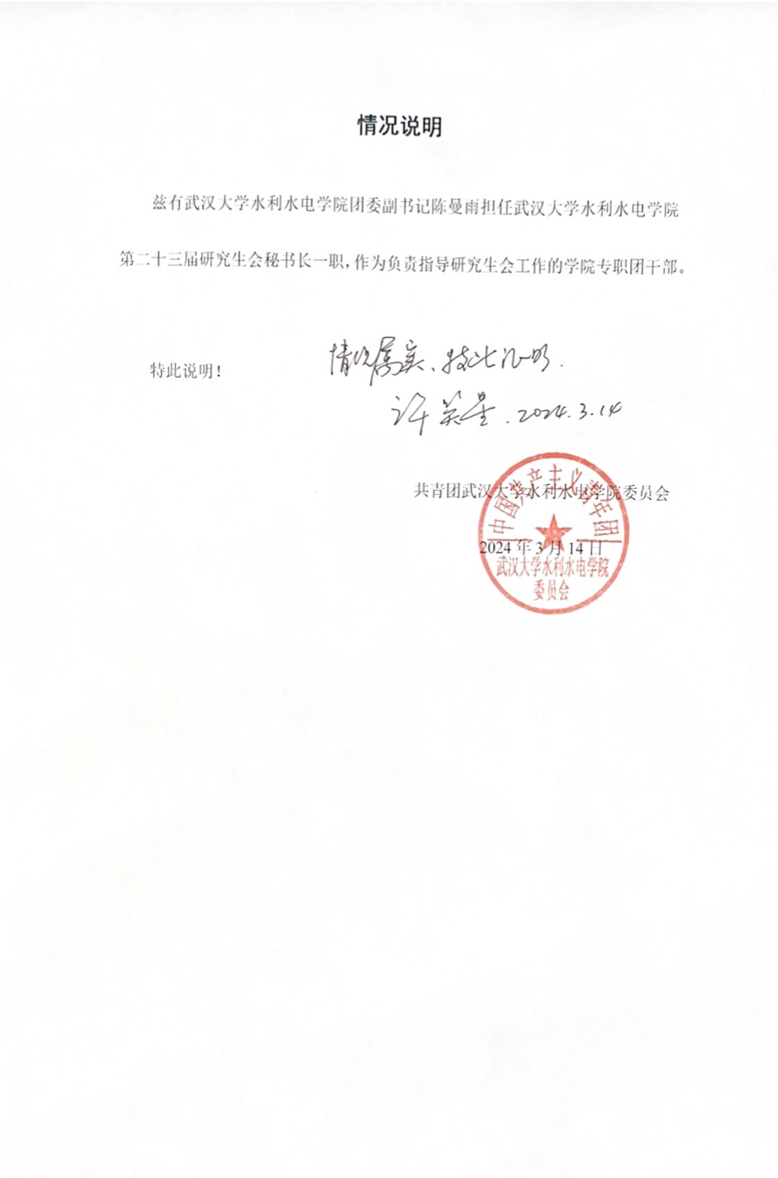 兹有51视频 团委副书记陈曼雨担任51视频 第二十三届研究生会秘书长一职,作为负责指导研究生会工作的学院专职团干部。