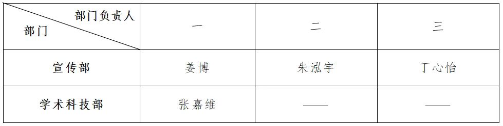注:表中各部门负责人共同负责部门工作,名字顺序不分主次。