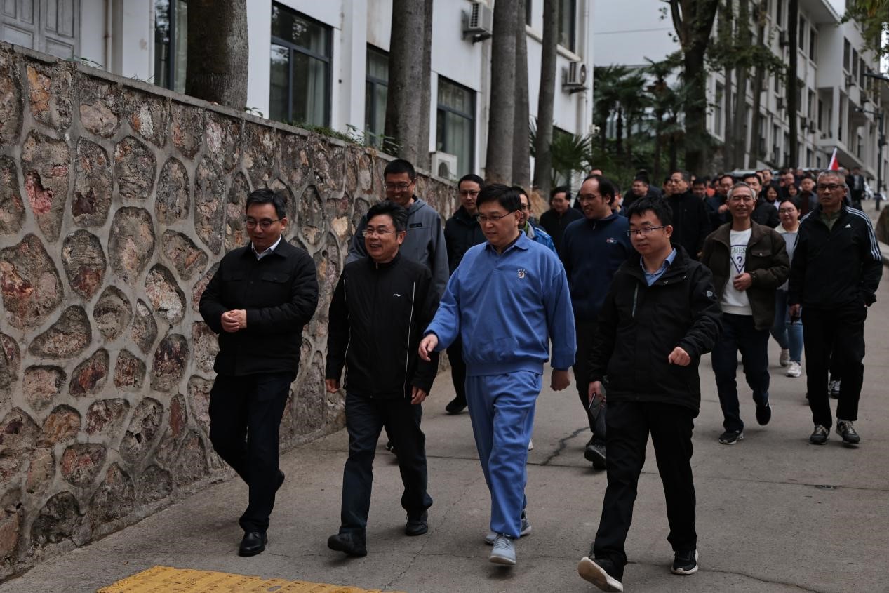 集结出发,开启了这场意义非凡的徒步之旅。他们沿着精心规划的路线,依次经过文澜门、洪波门、凌波门、扬波门最终回到出发点,全程约5公里,每一步都凝聚着对健康生活的向往与追求。