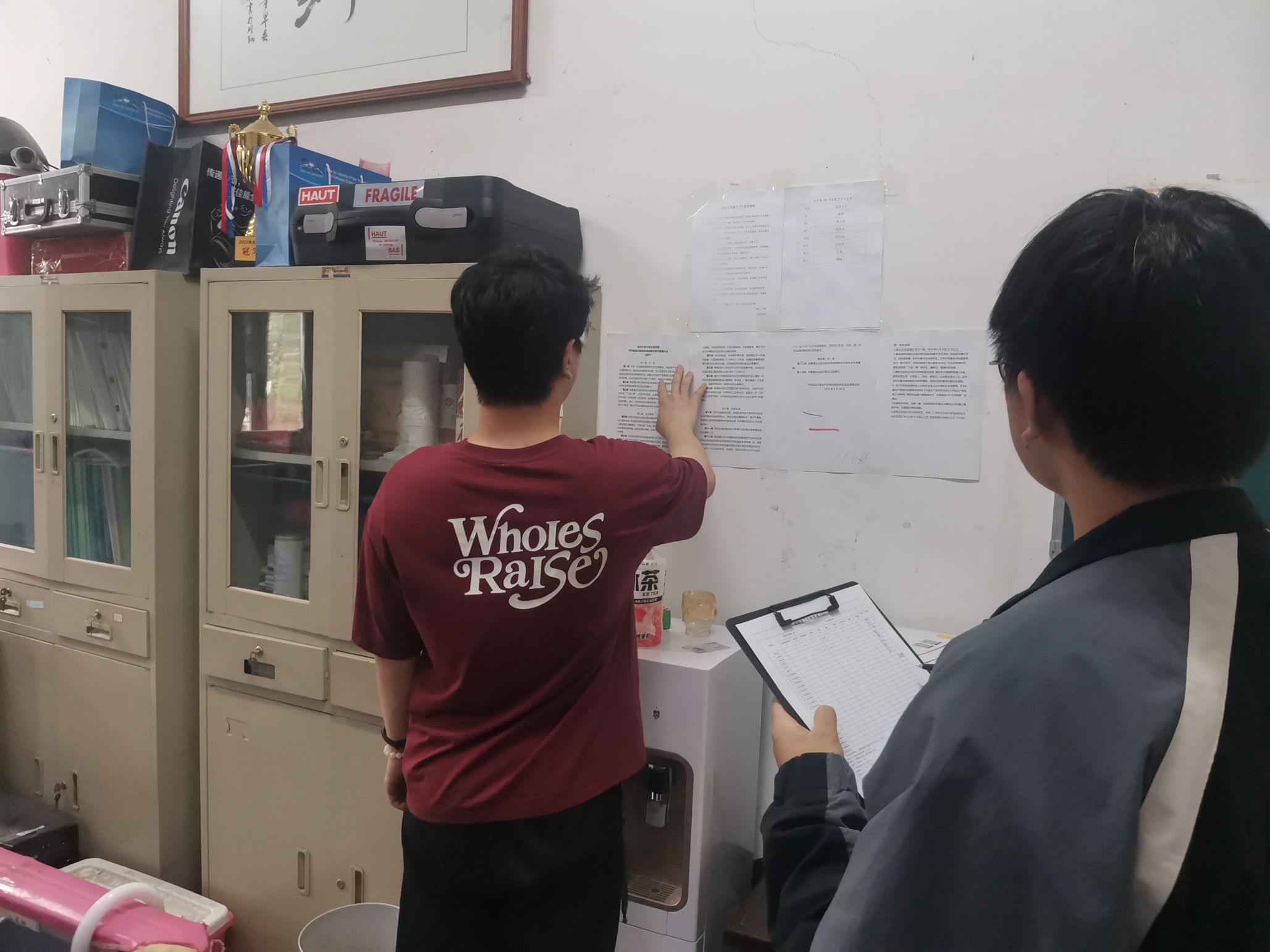 此外,我们也欣见众多实验室的卫生环境有了显著提升。曾经杂乱无章的电线布局和随意堆积的文件资料,经过此次整顿,已恢复了条理和秩序。这种变化不仅提高了实验室的工作效率,也更加突显了定期走访活动的极大价值,它让我们的工作空间变得更加安全和舒适。