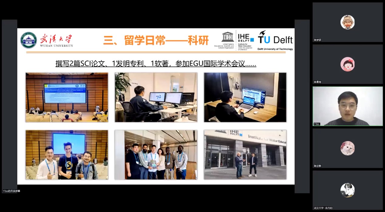 2022年12月14日,IAHR在线上举办了CSC留学经验分享交流会。交流会共邀请了三位有过出国经验的嘉宾,他们分别是来自水文学及水资源专业的2020级博士研究生王奕博、水利水电工程专业的2018级博士研究生陈梦婷,和水利水电工程专业的2020级博士研究生余丹阳。三位优秀的嘉宾从不同的角度分享了自己的留学经验,为正在科研道路上的同学们埋下了一粒出国留学的种子。