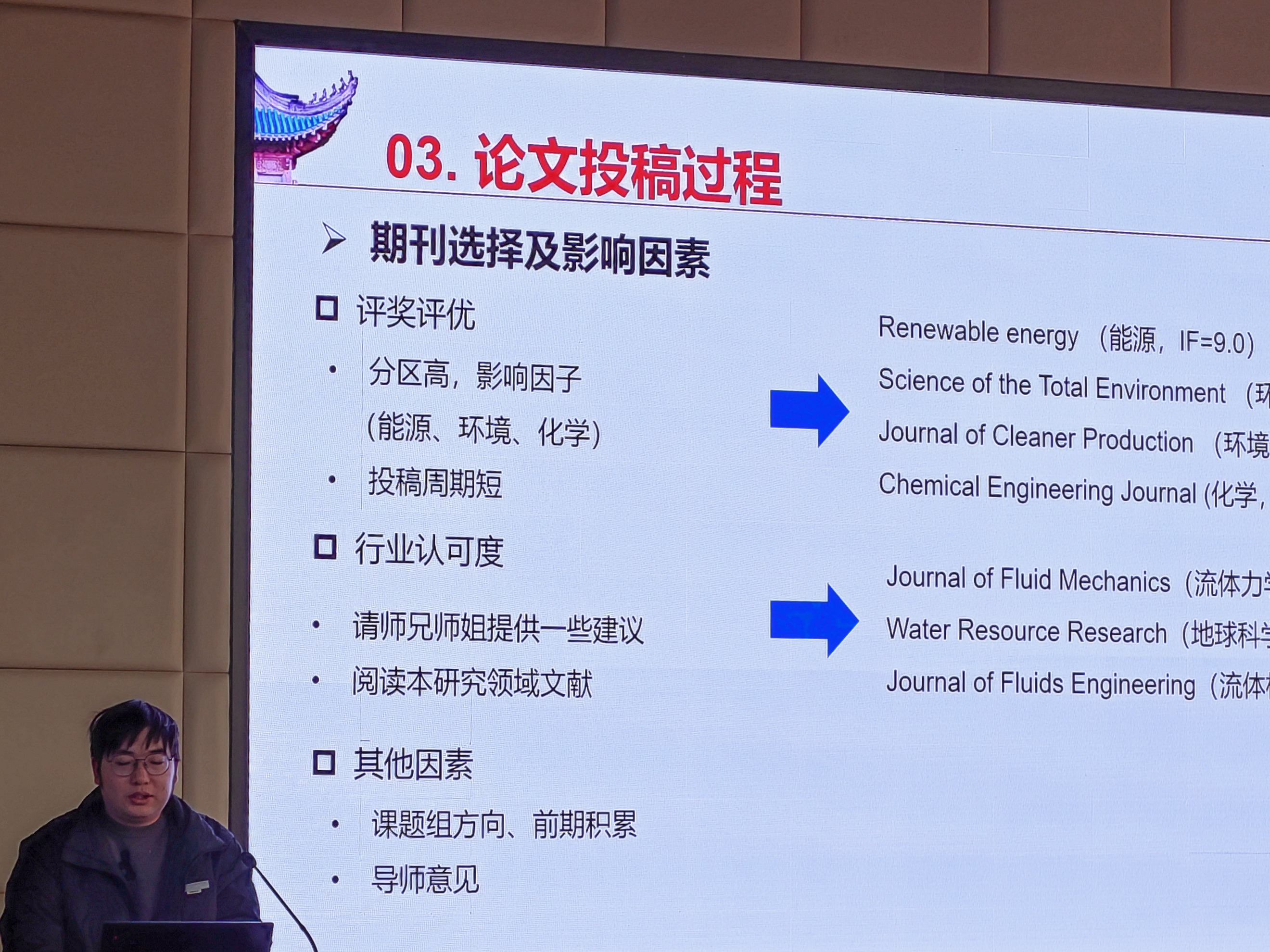 孙蓝心分享了撰写论文的策略与步骤,指出提升写作技能最快的途径是从模仿到创新,同时强调了学术资源获取与合作交流的重要性,要充分利用组会和学术会议获取组内、外界的学术资源;谢雨祚讲述了自己科研路上的坚持与感悟,提到要学会泛读、精读文献,建立知识体系,此外也要注意劳逸结合,保持稳定和持续的输出;雷旭昕提到要合理利用课题组已有成果,如组会上的数据分享与现成的代码,最终根据论文质量和期刊定位做出期刊投稿选择,并指出良好的心态与规划能使科研效率事半功倍;何立滢分享了文献检索经验,在进行期刊选择时,要考虑发文量、老师推荐、期刊分区、影响因子、方向、审稿周期等因素,并强调被拒稿后要调整心态重投他刊,选择有时候大于努力;杨忠坡介绍了知云翻译、Research Gate、Google Scholar、ChatGPT等科研神器,同时强调了论文要确保文章格式统一,出图质量明确、清晰、美观,英文写作地道、精炼、丰富。
