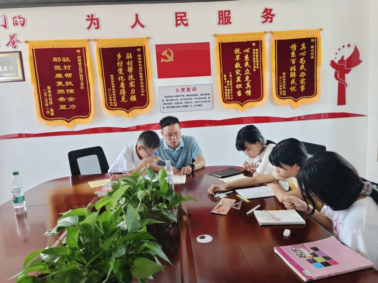 为基层群众办实事:设立公益课堂,助力社区儿童实现梦想。深入社区开展学生教育情况调研,精准掌握困难学生和大学生基本情况,不断提升本村学生升学率和就业率。成立“星光课堂”,每周为社区监测户家庭10余名子女辅导学业;为程老小学所有学生免费定制四季校服,捐赠全年级课后教辅教材300本,减轻了学生家庭的经济压力;依托村集体收入每周向程老小学所有学生捐送新鲜水果,用于满足小学生的日常营养需求。