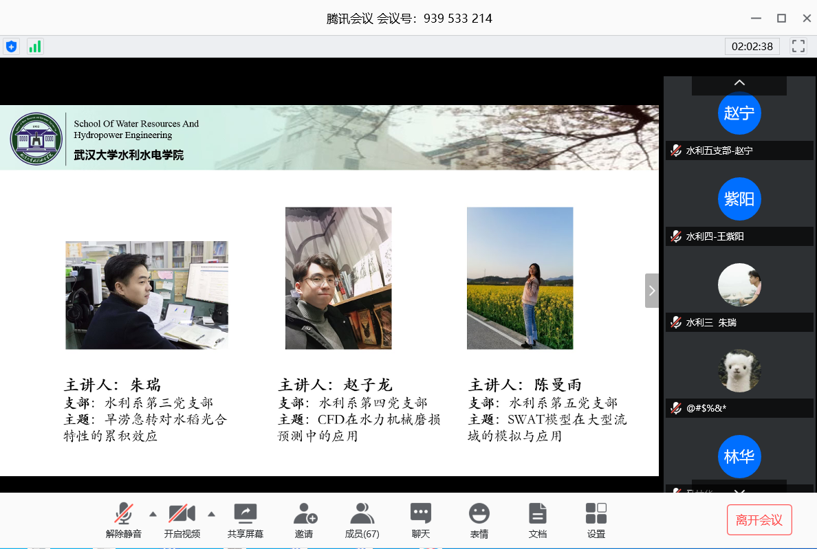 4月30日上午,学院第140期研究生“弘禹论坛”在腾讯会议app举行。教师季斌和管光华,研究生辅导员左志香,学生主讲人朱瑞、赵子龙、陈曼雨及相关专业研究生代表出席。本次论坛由研究生水利系第三党支部、研究生水利系第四党支部和研究生水利系第五党支部联合承办。
