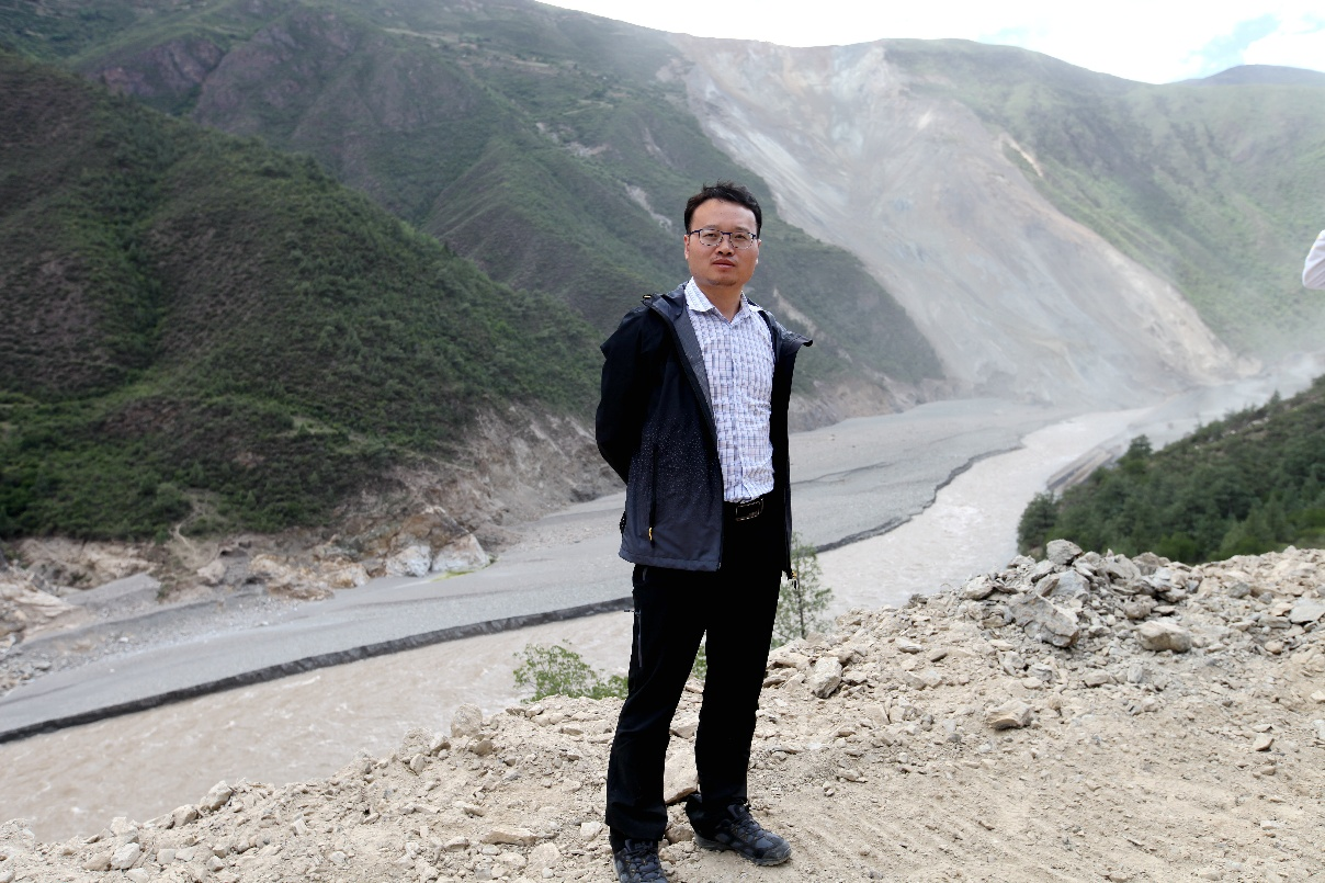 图为程磊教授在白格堰塞湖考察