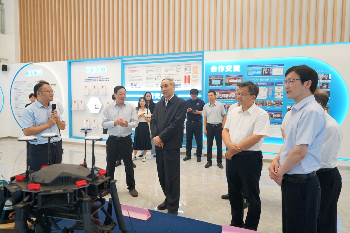 图为程磊教授(左一)为领导人介绍实验站成果