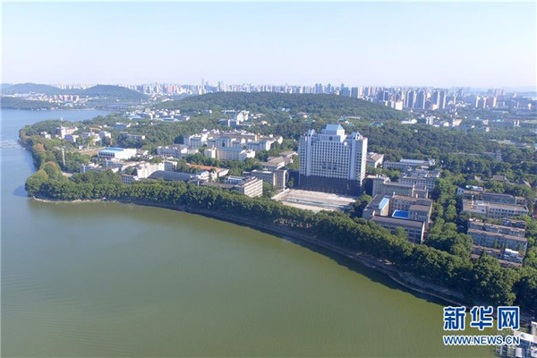 美哉母校,宜学天堂。从来风物俱佳,天然山水形胜。崇阁巍峨,长廊曲洞;层楼高起,方厦园亭。春有绿,夏有荫;秋有果,冬有青。朝游珞珈,看红日笑迎碧山,堪入画卷;暮游东湖,观夕阳喜送波粼,丹青难绘。兰佩紫,菊簪黄;樟树寿,桂枝香。一步一景,步移景换。春夏之交,花木欣荣;秋冬雪月,百里澄明。